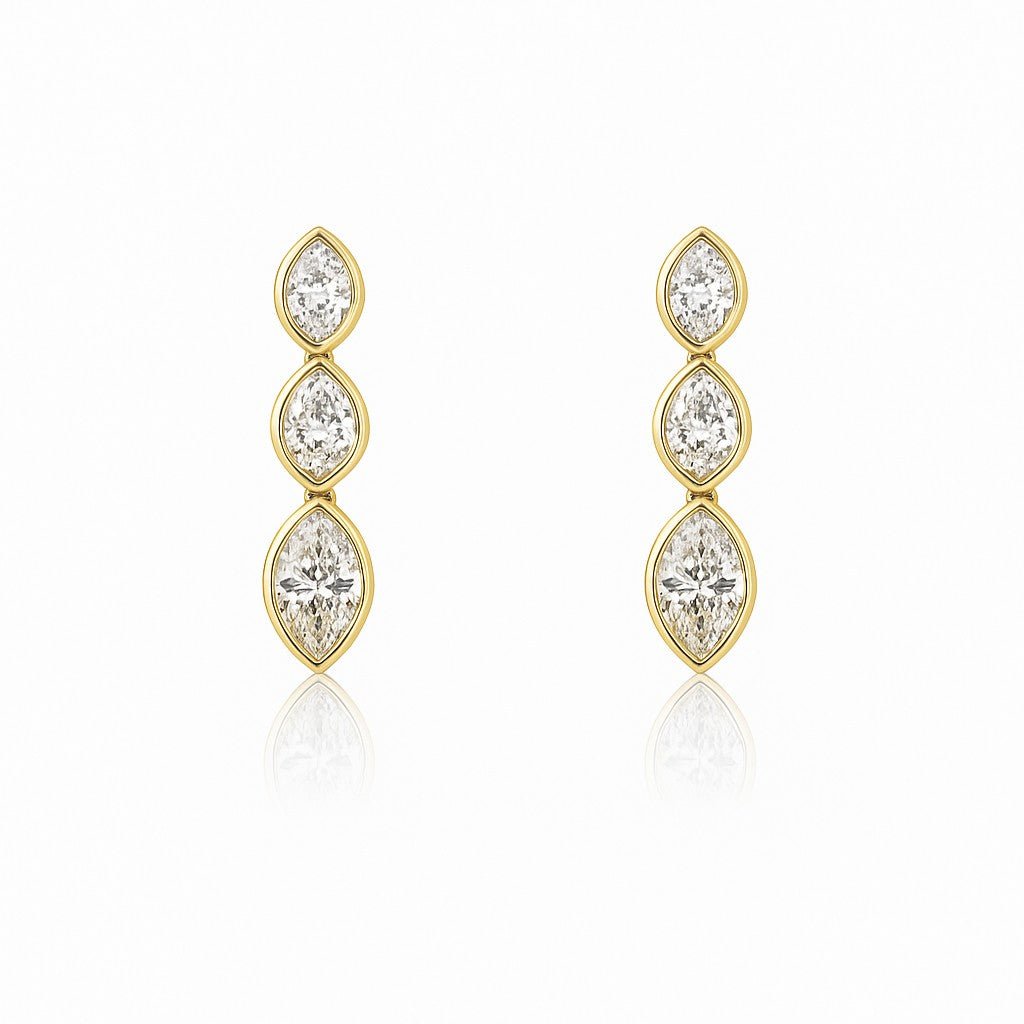 Diamond earrings made with marquise-shaped diamonds in 18K Yellow Gold. Diamonds totaling 3.25 carats.