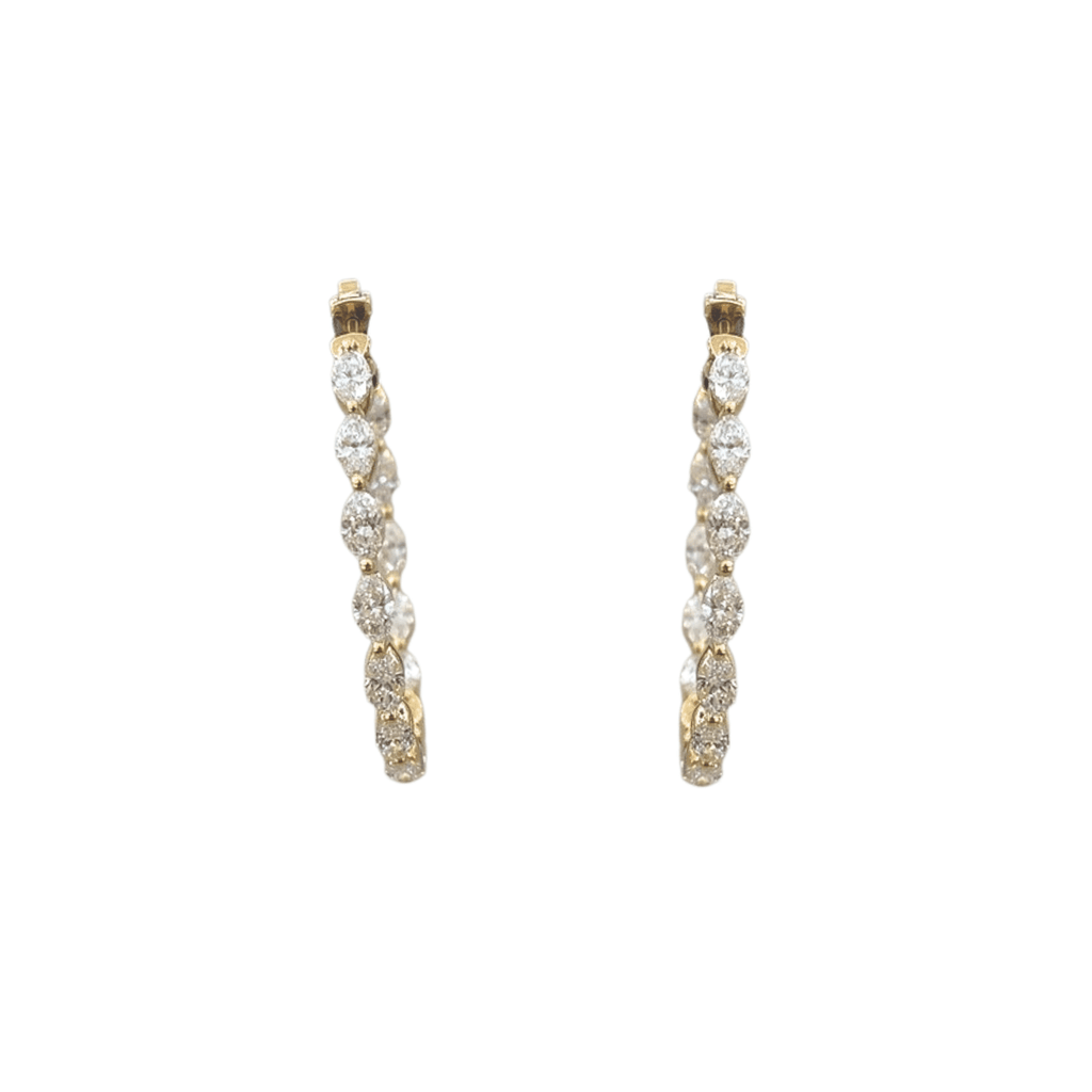 Diamond earrings made with marquise-shaped diamonds in 18K Yellow Gold. Diamonds totaling 3.25 carats.