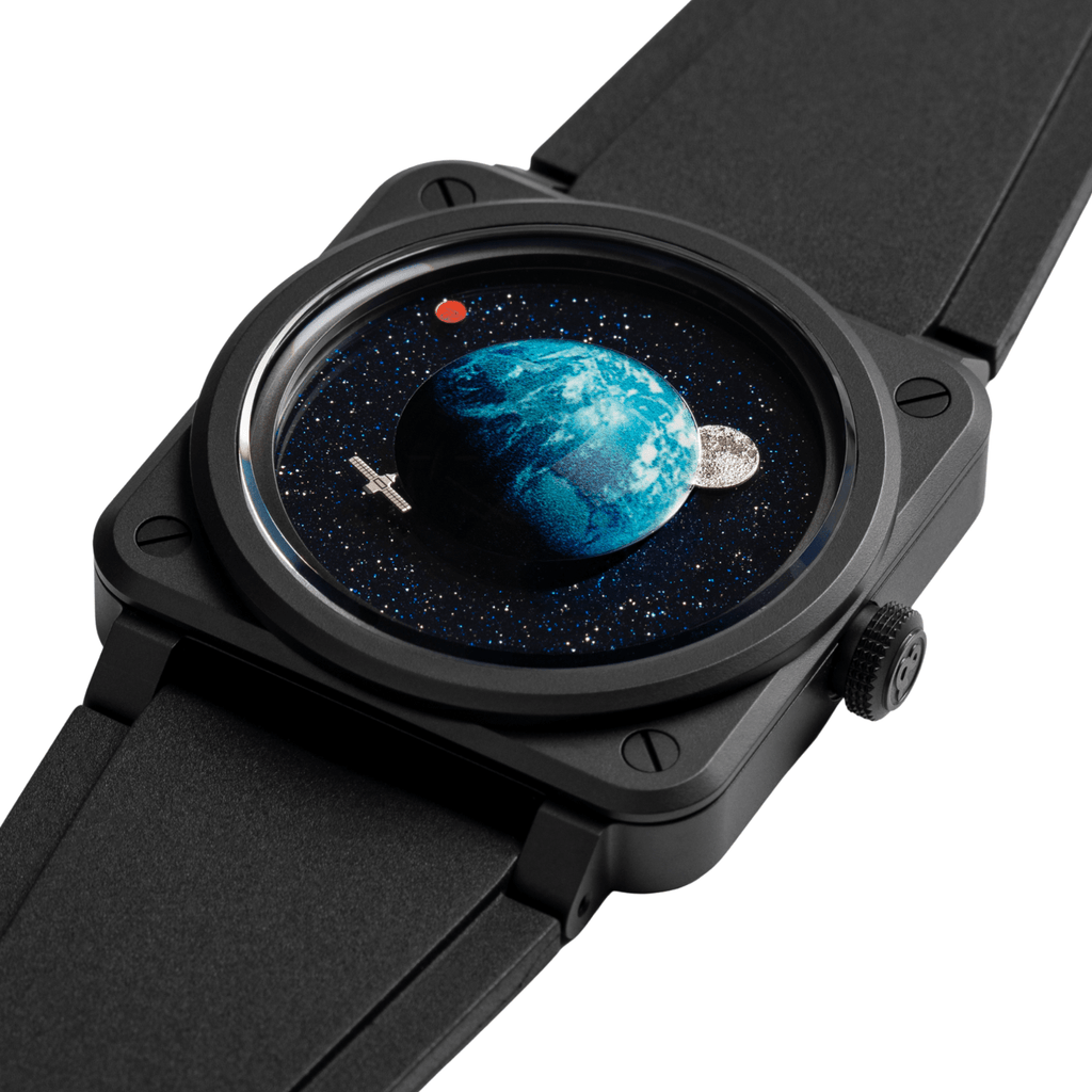 Bell & Ross reaches new heights with its latest BR-03 Astro, a watch evocative of the cosmic universe. By placing Earth at its center, surrounded by the Moon and Mars, Bell & Ross pays homage to the blue planet and offers a fresh perspective on its watchmaking expertise.