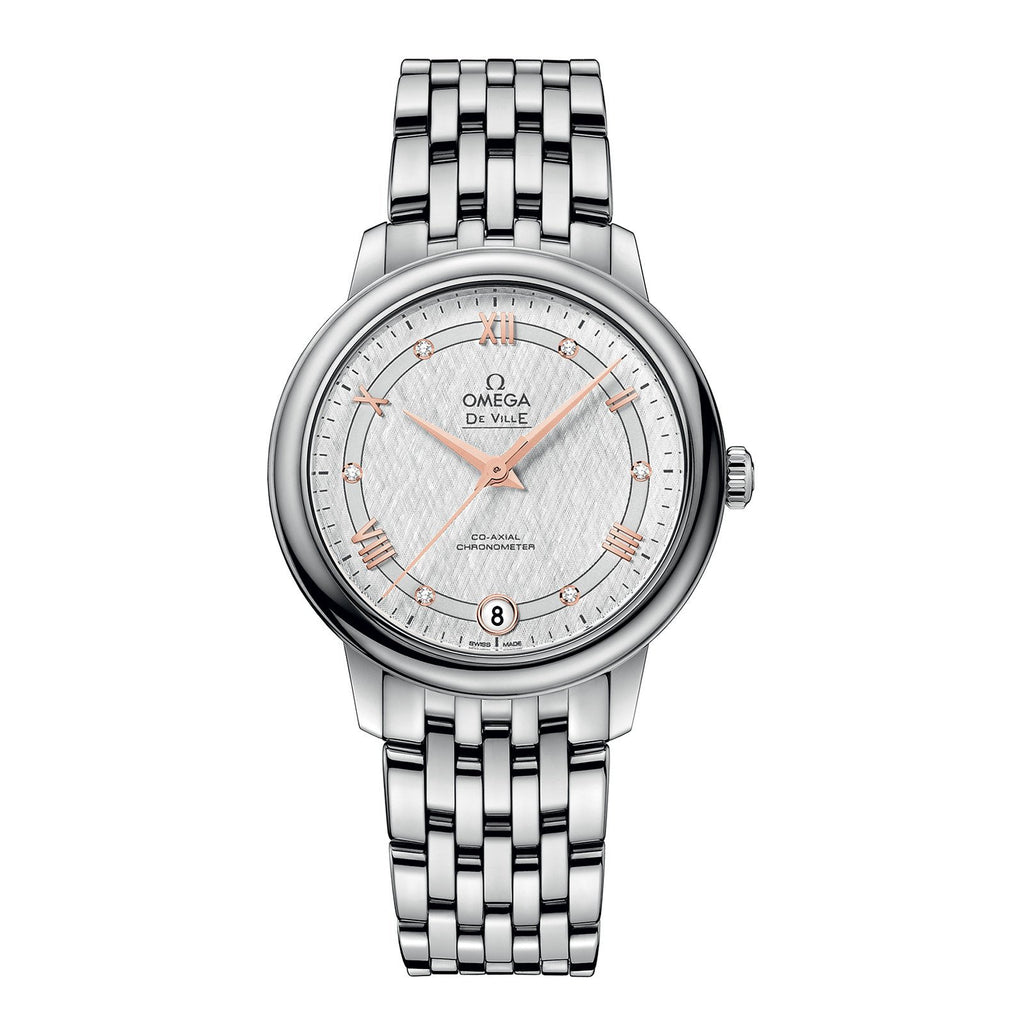 This De Ville Prestige is presented on a stainless steel bracelet and is powered by the OMEGA Co-Axial Chronometer Calibre 2500.