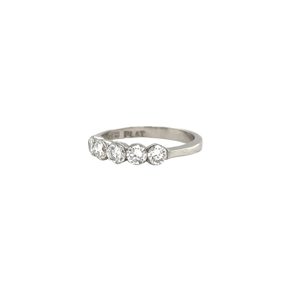 Platinum 5-stone diamond band. Diamonds totaling 0.98 carat weight.