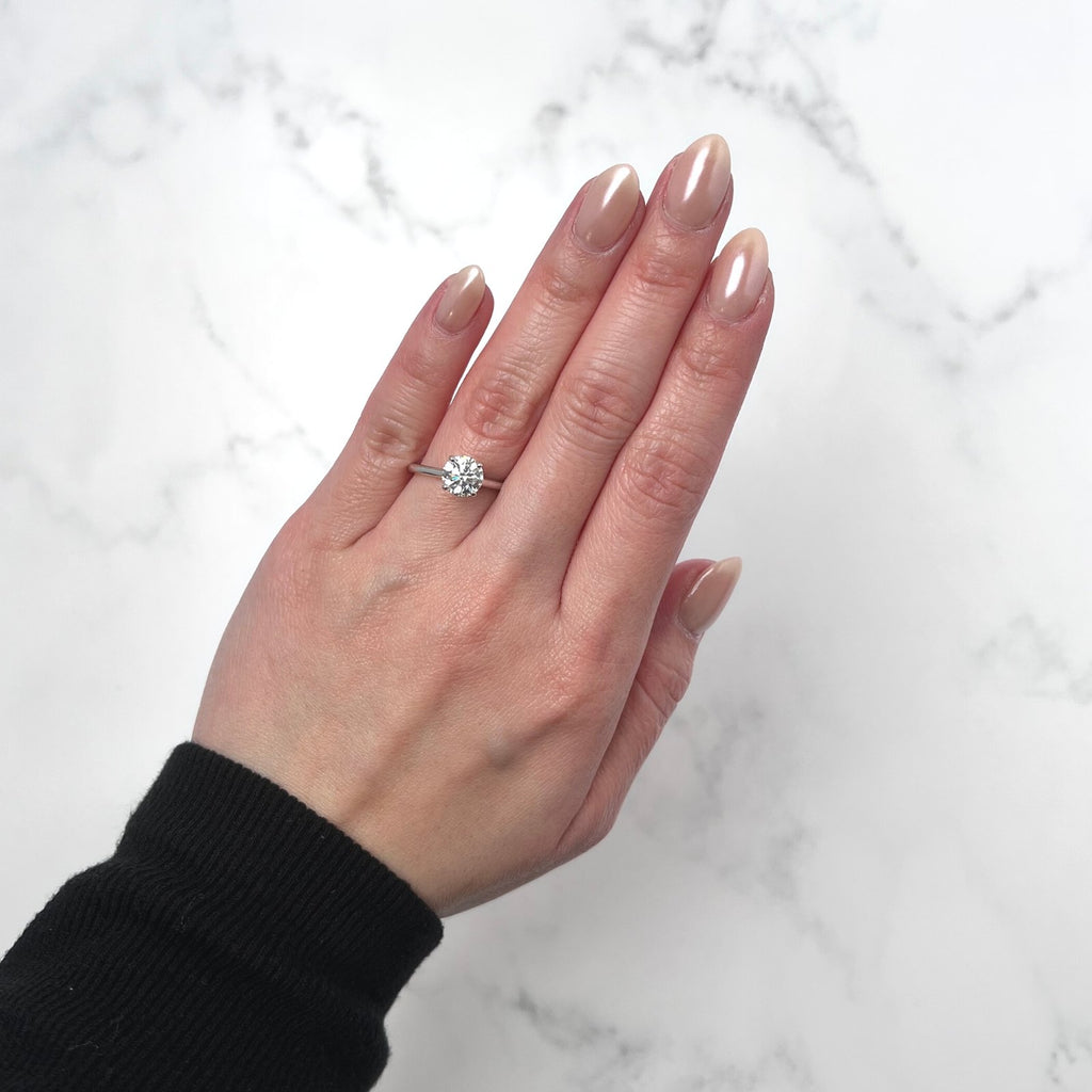 | Center Stone | Round-cut diamond, 1.38 carat weight F VVS 2 |