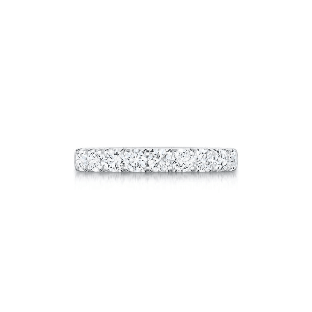 Elegant semi-eternity diamond band featuring 10 sparkling diamonds with a combined weight of 0.5 carats, set in lustrous platinum. The refined 2.5mm band width strikes a perfect balance between presence and comfort, making it an ideal choice for stacking or wearing solo.