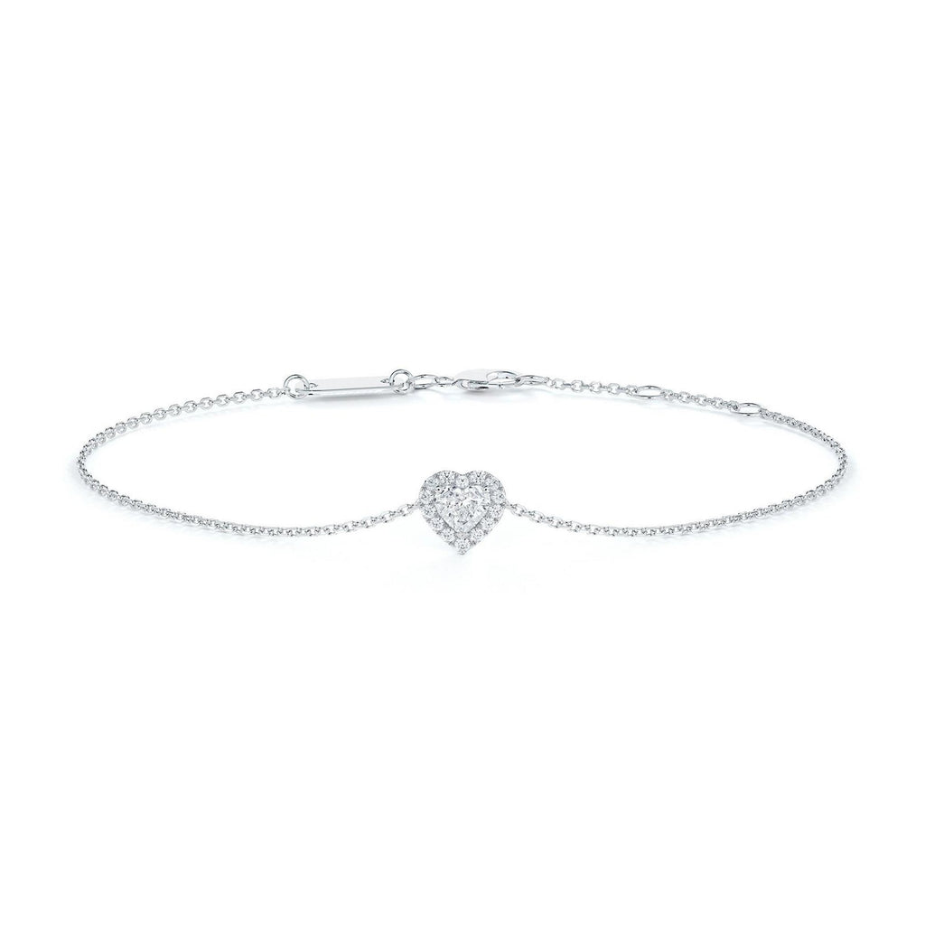 De Beers Aura Heart Diamond Bracelet in 18 karat white gold with diamonds.