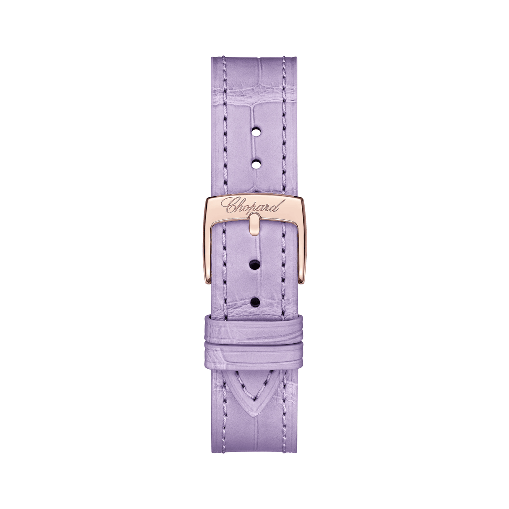 Expertly crafted with a 33mm rose gold case and a shimmering diamond bezel, this watch features an lepidolite glass dial. With water resistance of 30m and an automatic movement, it boasts a power reserve of 42 hours. The violet glossy alligator strap is secured with a convenient pin buckle.