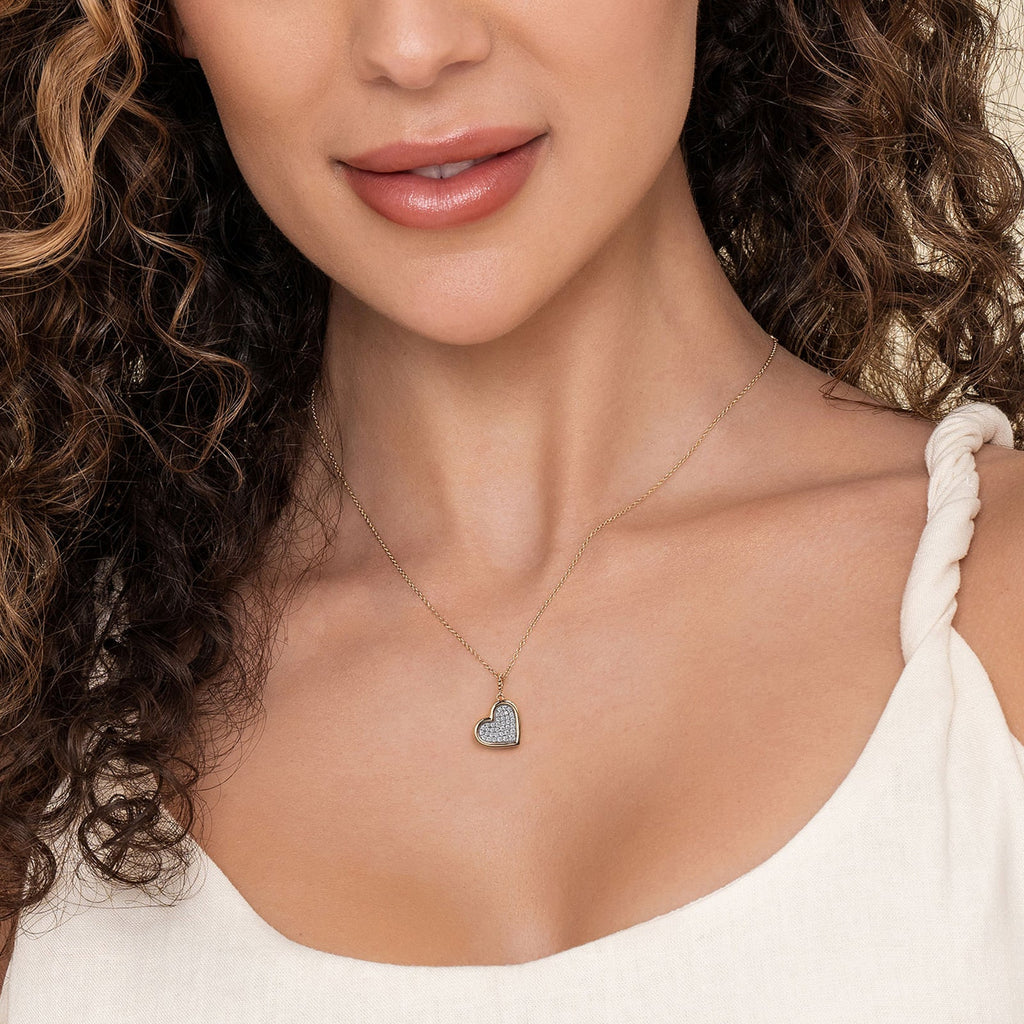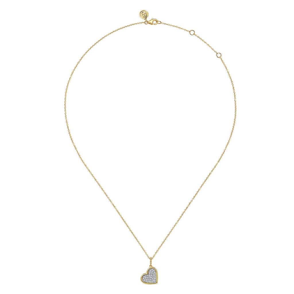 Gabriel & Co. Bujukan and Diamond Pave Heart Pendant Necklace in 14 karat white and yellow gold with diamonds totaling 0.25 carats.