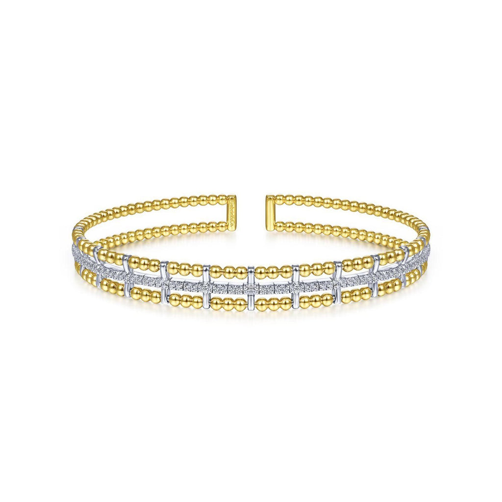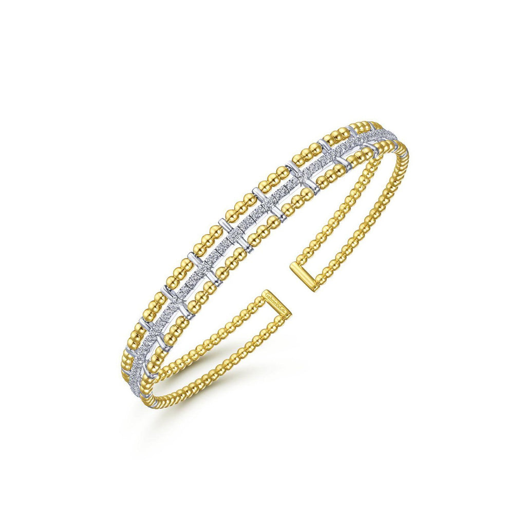 14 karat yellow gold Bujukan Bead Cuff Bracelet with Inner Diamond Channel