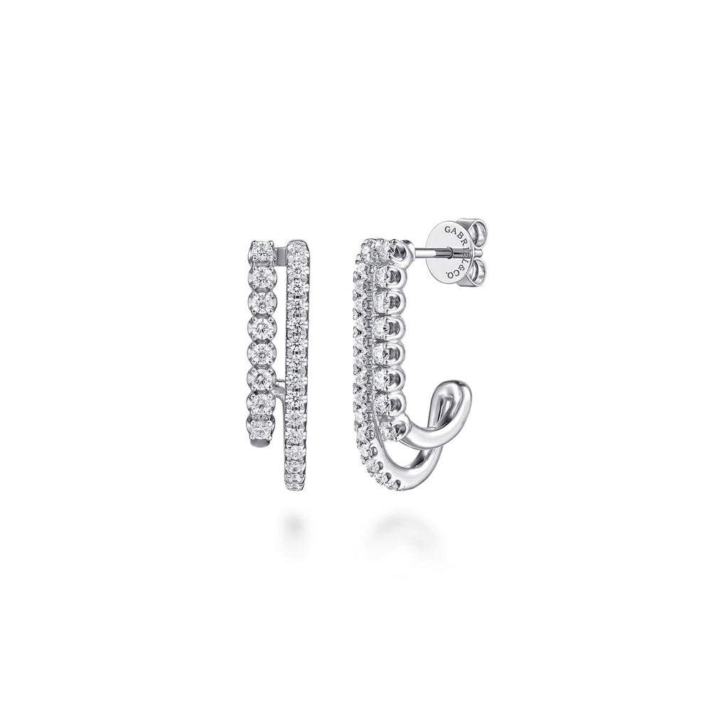 Gabriel & Co. Diamond Stacked J Hoop Earrings in 18K white gold with diamonds totaling 0.50 carats.