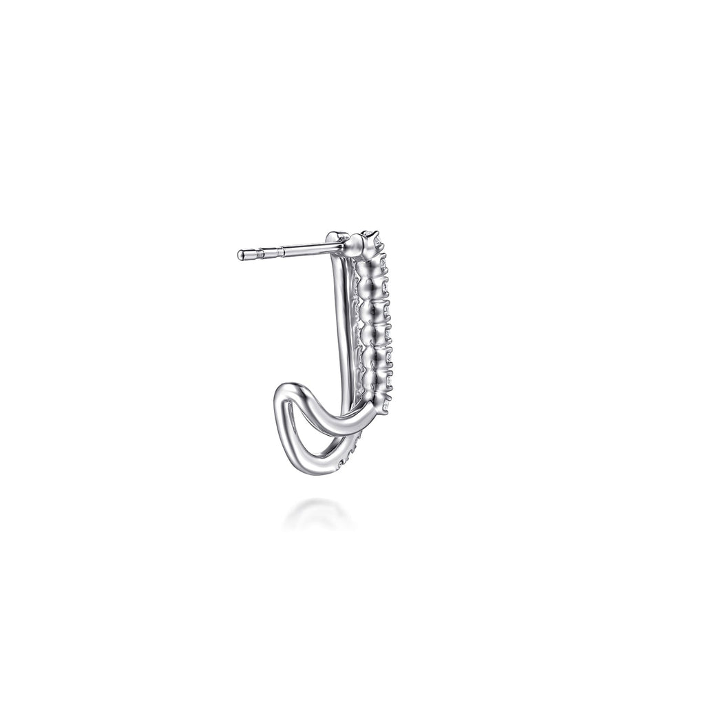 Gabriel & Co. Graduating Diamond Spike J Hoop Stud Earrings in 14 karat white gold. Diamonds totaling 0.75 carats.