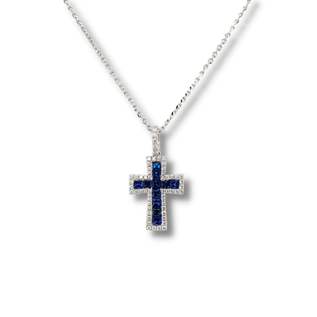 Sapphire and Diamond Cross Pendant and Chain