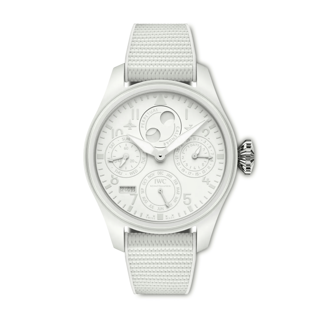 With the Big Pilot’s Watch Perpetual Calendar Ceralume®, IWC Schaffhausen’s proprietary luminous ceramic technology makes its debut in the Pilot’s Watches collection. A watch of two entirely different expressions, it captivates with subtle shades of white and grey in daylight and transforms into a vivid blue-glowing instrument in the dark.