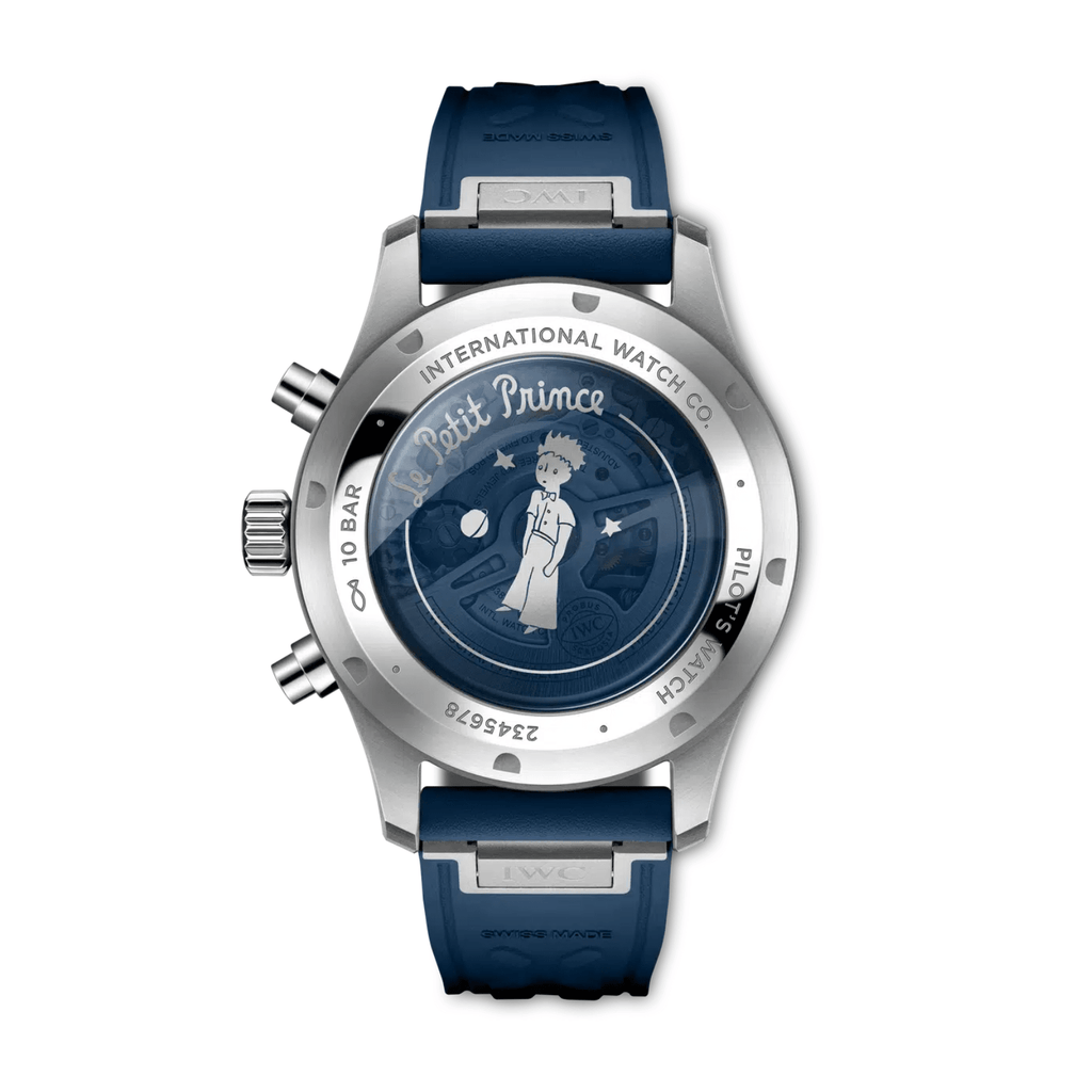 The Pilot’s Watch Chronograph Le Petit Prince unites the timeless fascination of Antoine de Saint-Exupéry’s literary classic with the modern aesthetic of stainless steel.