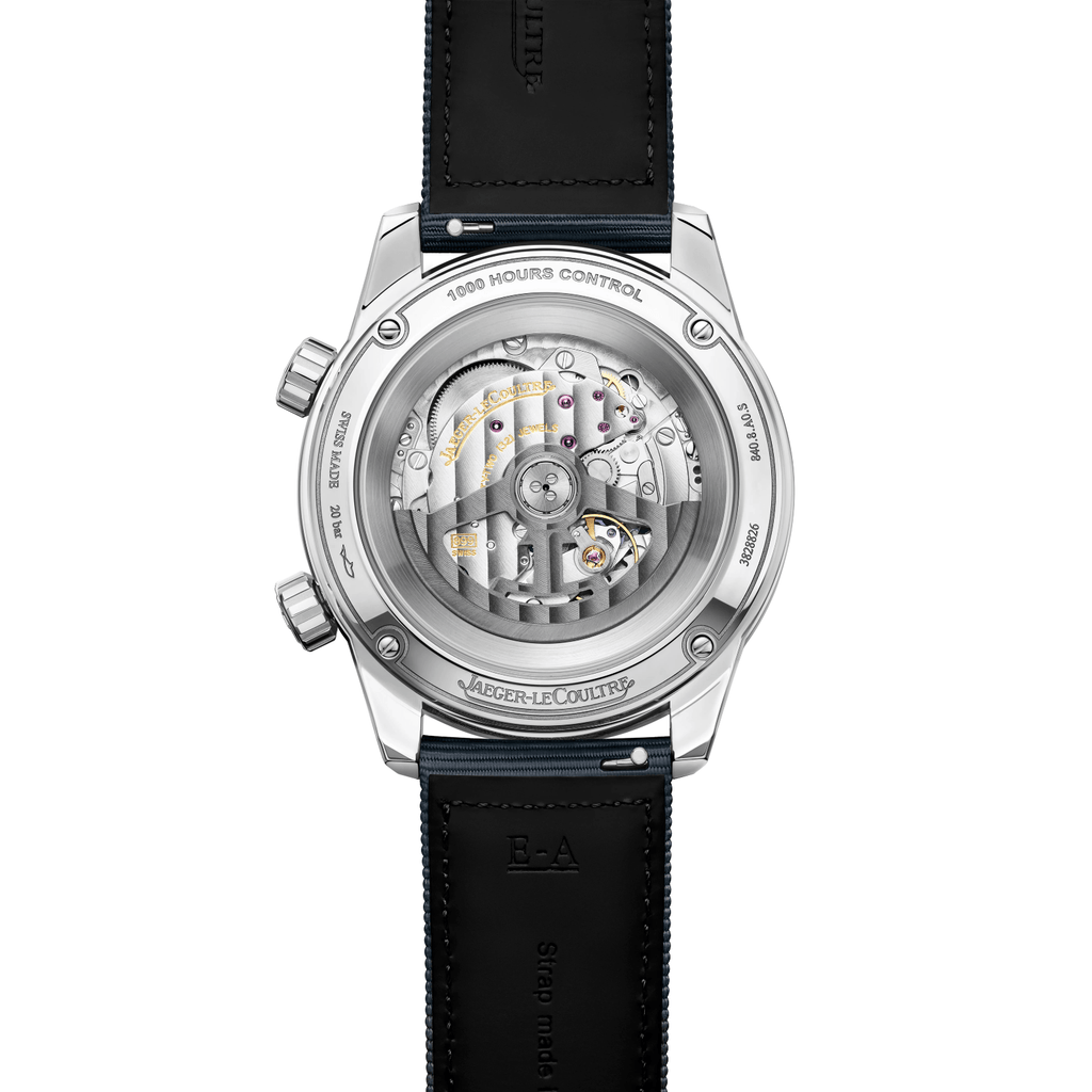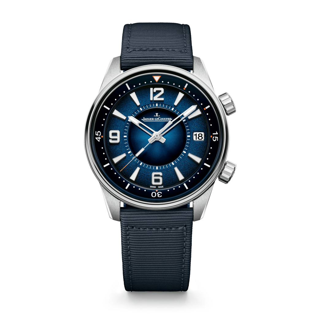 In keeping with the codes of the Polaris collection, the lacquered dial of the Polaris Date watch features magnificent graduated shades of blue that catch the eye. Its three levels of finish—opaline bezel, grained index circle and sunray-brushed center—make it possible to delimit the different areas of the watch, highlighting each element: the orange triangle of the inner bezel, the hour markers and numerals with their assertive silhouette, and the skeletonized hands with their Super-LumiNova® tips. Under the sapphire case-back, the in-house Jaeger-LeCoultre Calibre 899 designed, produced and assembled at the Manufacture offers 70 hours of power reserve - an undeniable asset for a sports watch.