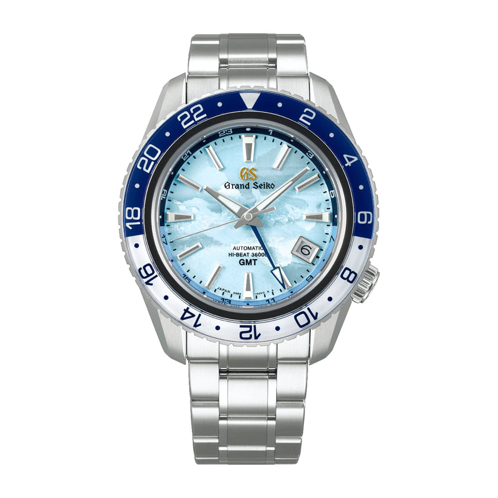 In celebration of the 25th Anniversary of Caliber 9S, Grand Seiko has created a new GMT in the Sport Collection that takes inspiration from the skies over Iwate.The dial illustrates a rare daybreak scene, when humid air forms dense clouds that overlar and appear to be a sea of clouds. The blue color is inspired by the color of the sky over Mt. Iwate, the peak visible from the Grand Seiko Studio Shizukuishi, where Grand Seiko mechanical watches are assembled by hand.The stainless steel GMT features a blue and white bezel with a sapphire crystal insert, elevating the design and enabling the time to be read in three time zones simultaneously.A Hi-Beat mechanical GMT movement powers this watch. The Caliber 9S86 provides an accuracy of +5 to -3 seconds per day with excellent stability and shock resistance thanks to its 10-beat-per-second rate. The movement’s rotor, which has been turned blue through an anodic oxidation process, is visible through an exhibition case back for the first time in a Grand Seiko mechanical watch with a water resistance of 20 bar.