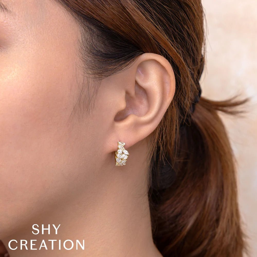 Shy Creation Diamond Marquise Pear Icy Hoop Earrings 1.85 CT