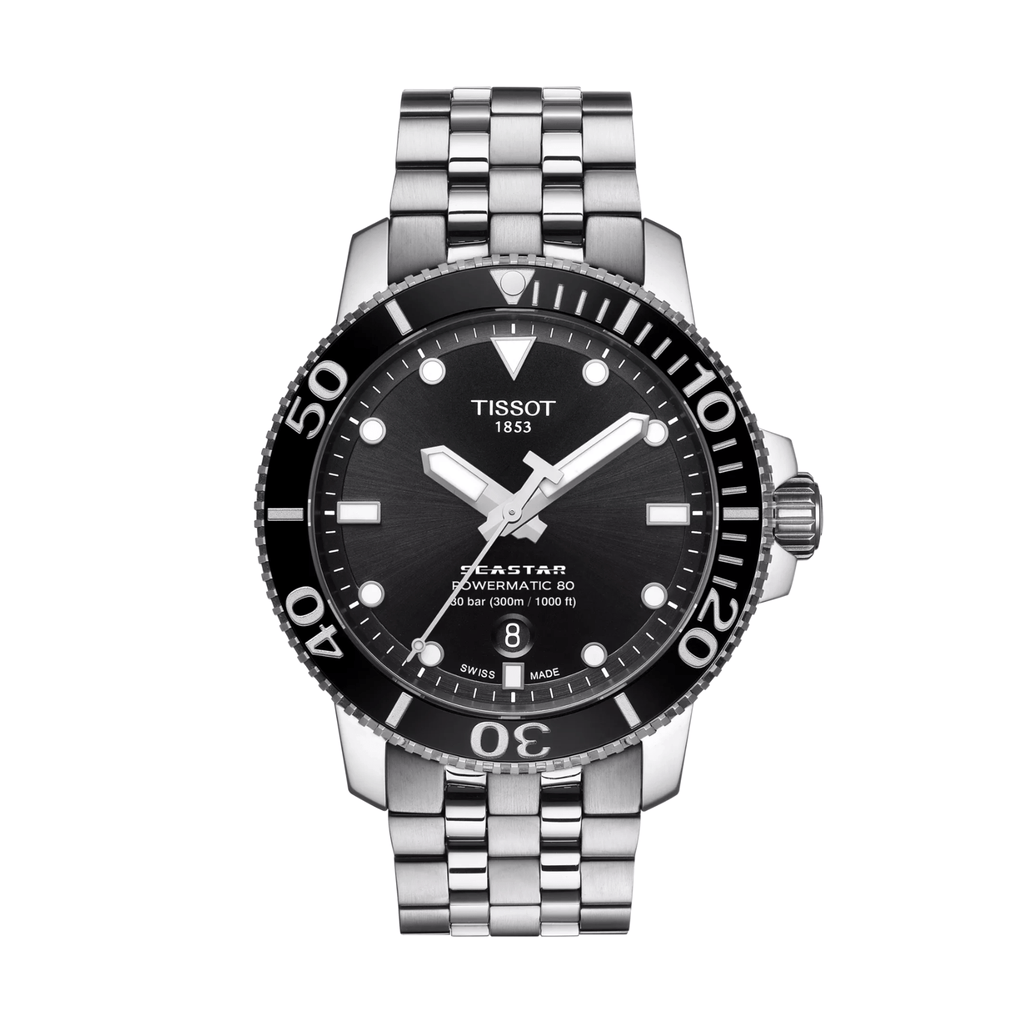 Measuring 43 mm, this timepiece features a 316L stainless steel case and a ceramic bezel insert. It offers an impressive power reserve of up to 80 hours and is equipped with a screw-down crown and caseback for enhanced durability. The watch includes a see-through caseback showcasing the Swiss automatic movement. Its sapphire crystal is scratch-resistant with an antireflective coating. Designed for serious water resistance, it can withstand pressures up to 30 bar (300 m / 1000 ft).