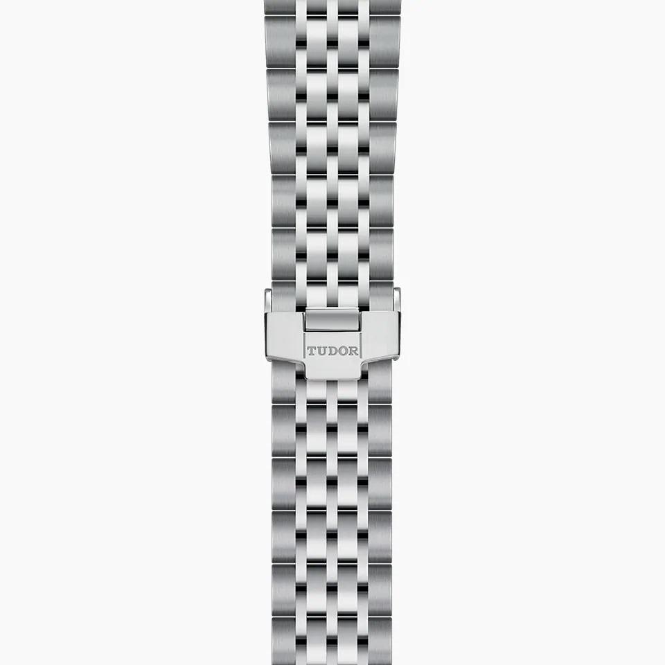 36-mm steel case, silver dial. 36-mm steel case with polished finish. Smooth steel bezel with polished finish. Self-winding mechanical movement, Caliber T601. Silver, embossed decoration, domed. Steel screw-down winding crown with the TUDOR logo. Sapphire crystal. Waterproof to 100 m (330 ft). Steel bracelet, 7 rows, satin-brushed external links, polished center links, with folding clasp and safety catch.