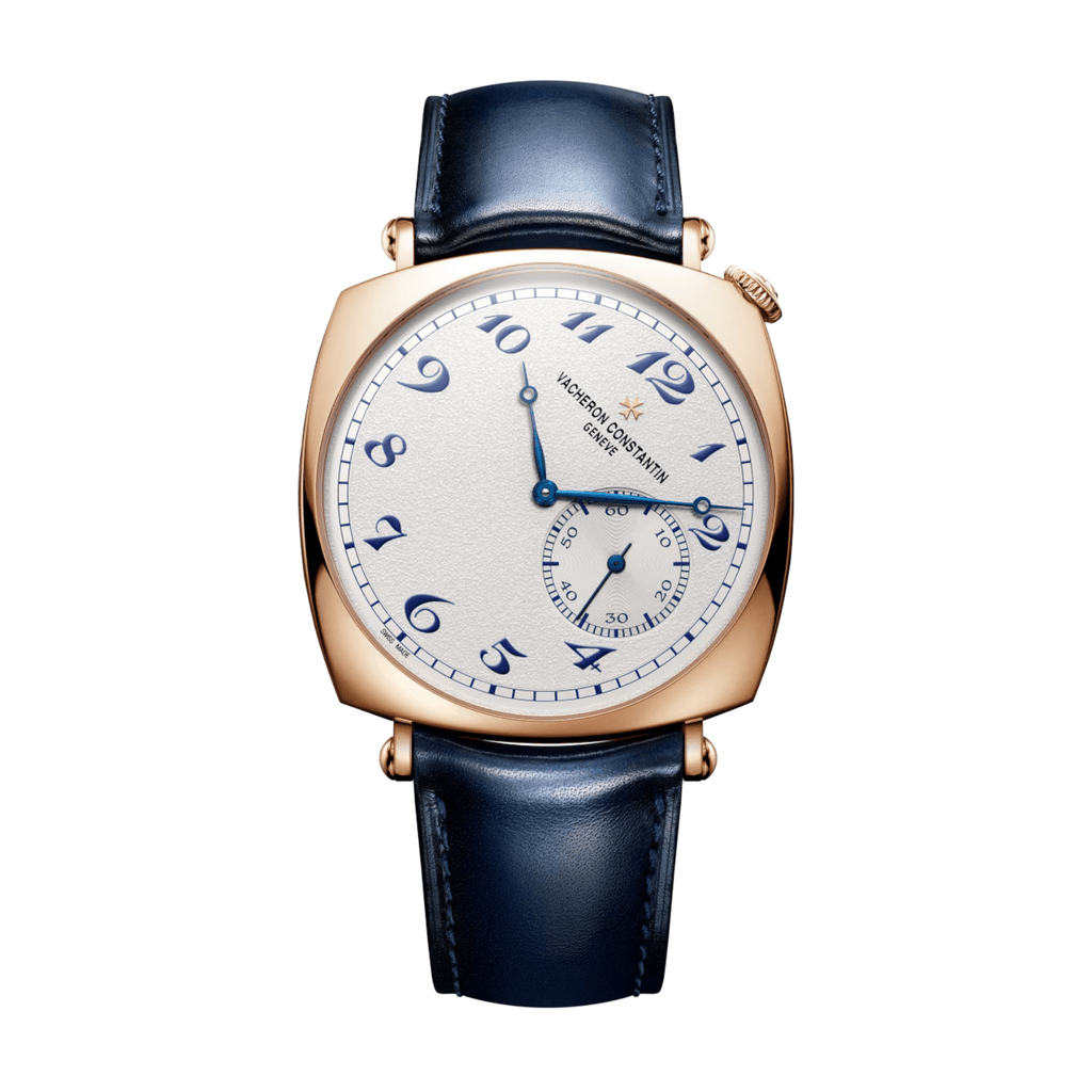 Echoing its original spirit, this singularly designed timepiece in 18K 5N pink gold reinterprets a 1921 model, conceived for the American market during the Roaring Twenties. It stands out for its diagonal reading, allowing the time to be read without turning the wrist, as well as its crown audaciously placed at 1:30. This model elevates the emblematic design with a grained silver-toned dial, beautifully accented by blue indexes and hands. A manual-winding movement ensures a power reserve of nearly 3 days.