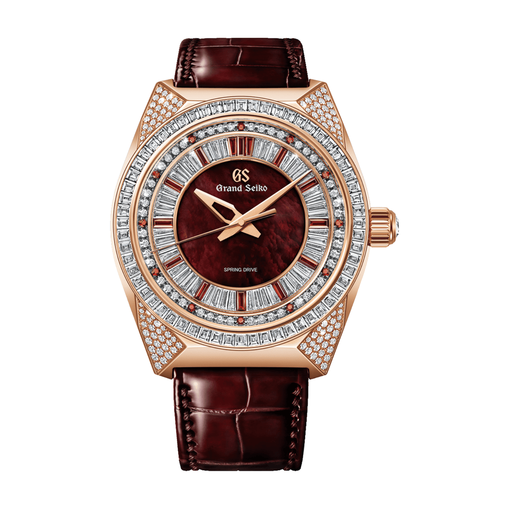 From the time of its inception in 1960, Grand Seiko has pursued the pinnacle of wristwatches. This unwavering spirit is embodied in its brand symbol, the lion, which is the inspiration behind this jewelry watch, a limited-edition of eight. The theme of this model is the “red lion,” capturing the passion and majesty of this inspirational creature. The watch is set with over 250 diamonds, between its beautiful 18k rose gold case and its dial, where they join brilliantly shining garnets, stones that represent the passion that transforms effort into success. At the watch’s heart is the Spring Drive 8 Days Caliber 9R01, crafted at the Micro Artist Studio, located within Seiko Epson’s Shiojiri facility, where master watchmakers and artisans unite to create the finest Spring Drive movements. Born from the harmony of Grand Seiko’s philosophy of watchmaking and the inquisitive spirit of the Micro Artist Studio, the movement employs a mechanism with three barrels arranged in a series to achieve an extended eight-day power reserve. This ensures that the watch maintains the high accuracy that is Spring Drive’s hallmark over a long period of time. The exterior of the movement receives its beautiful finishing at the hands of the expert artisans of the Micro Artist Studio.