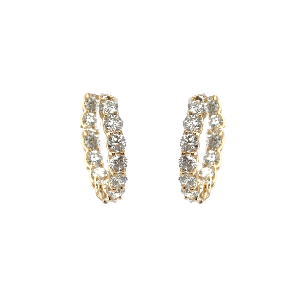 18K Yellow Gold Diamond Hoop Earrings. 24 Diamonds approximately 3.04 total carat weight