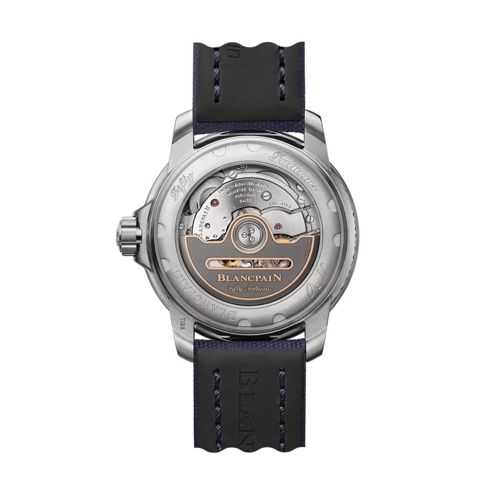 38mm titanium case, blue dial. Automatic movement, power reserve of 100 hours. Water resistance of 30 bar. Date display. Canvas strap.