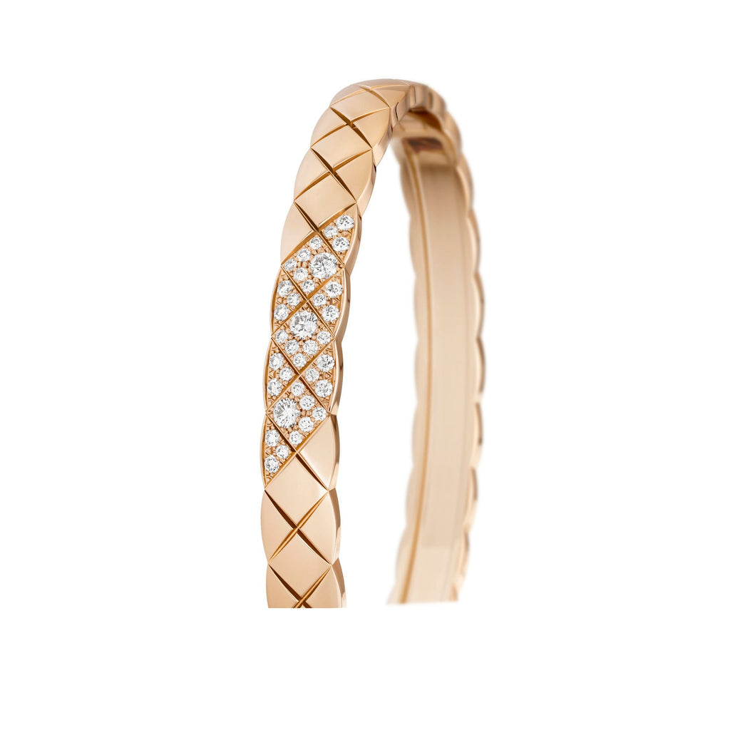 This CHANEL Coco Crush Bracelet in 18k beige gold features 36 brilliant-cut diamonds with a total weight of 1.29 carats.