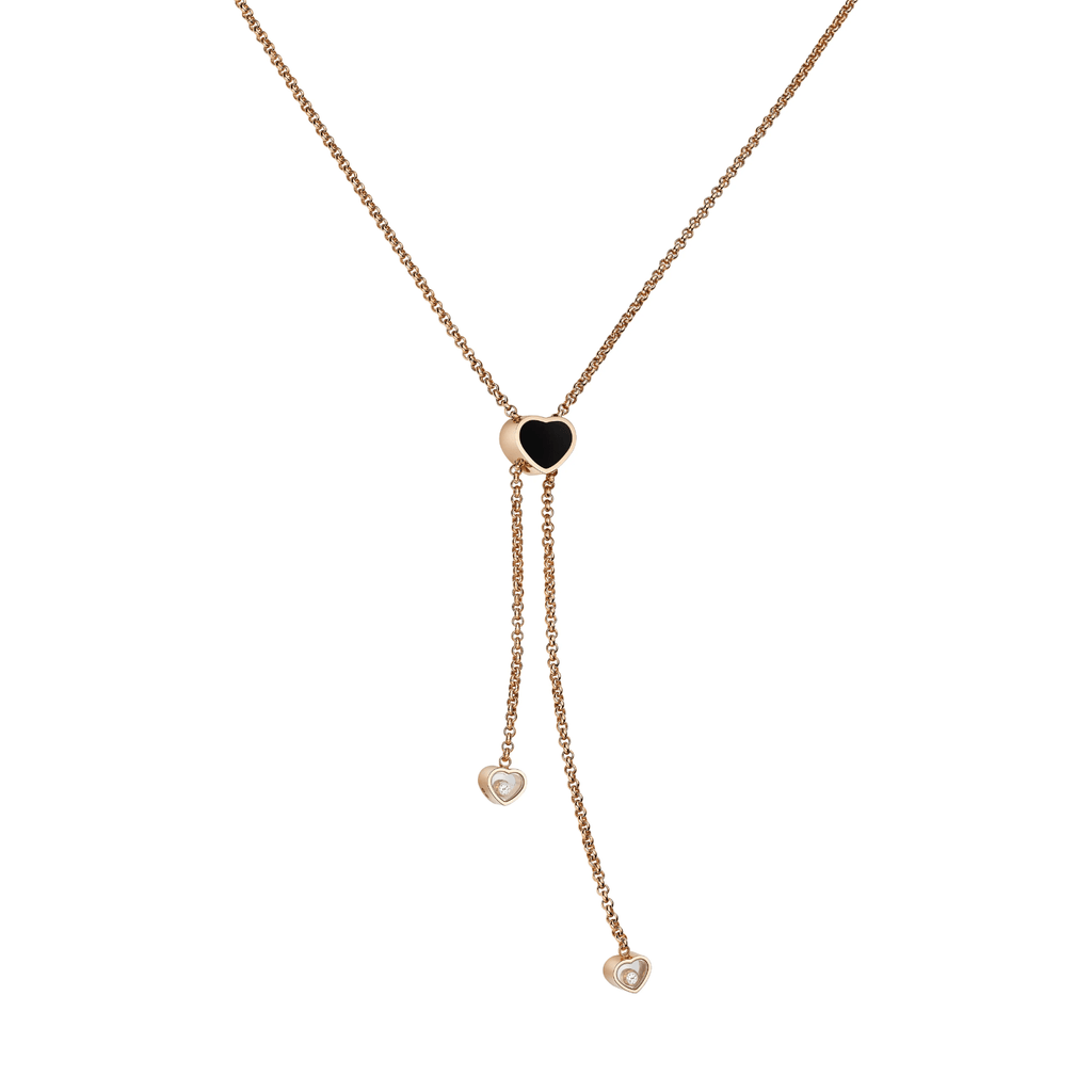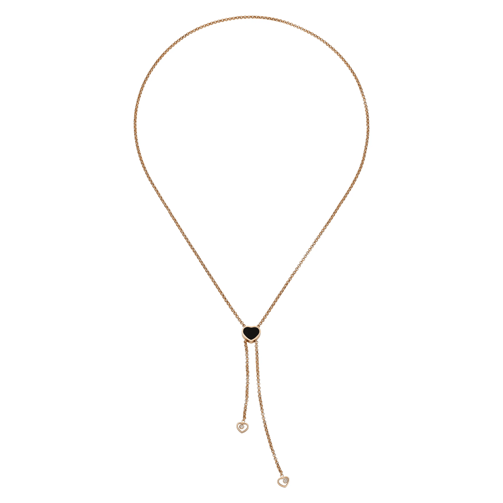 Chopard, renowned for its commitment to generosity and kindness, embodies these values in the Happy Hearts collection. This line seamlessly combines the Maison’s signature dancing diamonds with its heart motif, celebrating women with big hearts worldwide. Crafted in 18k rose gold, featuring onyx and diamonds, the Happy Hearts Tie Necklace exemplifies how small diamonds can make a significant impact.