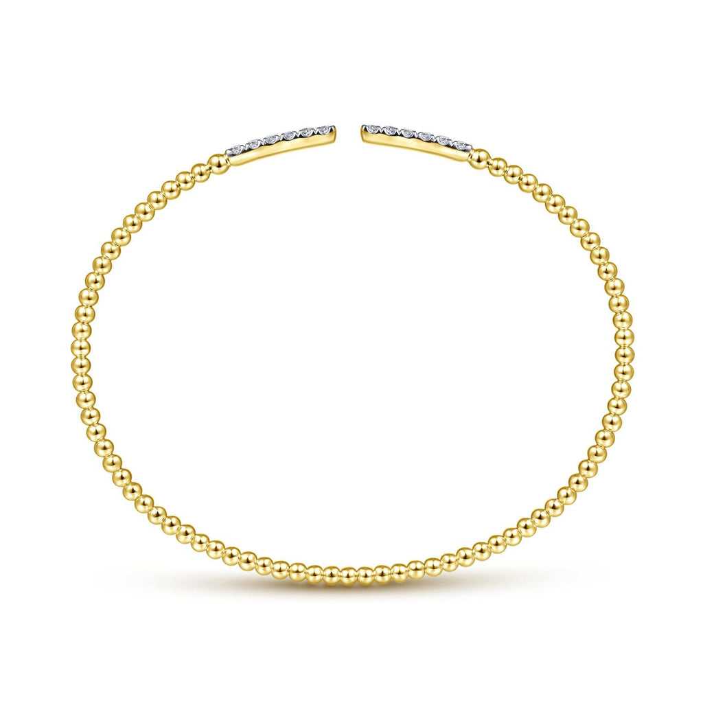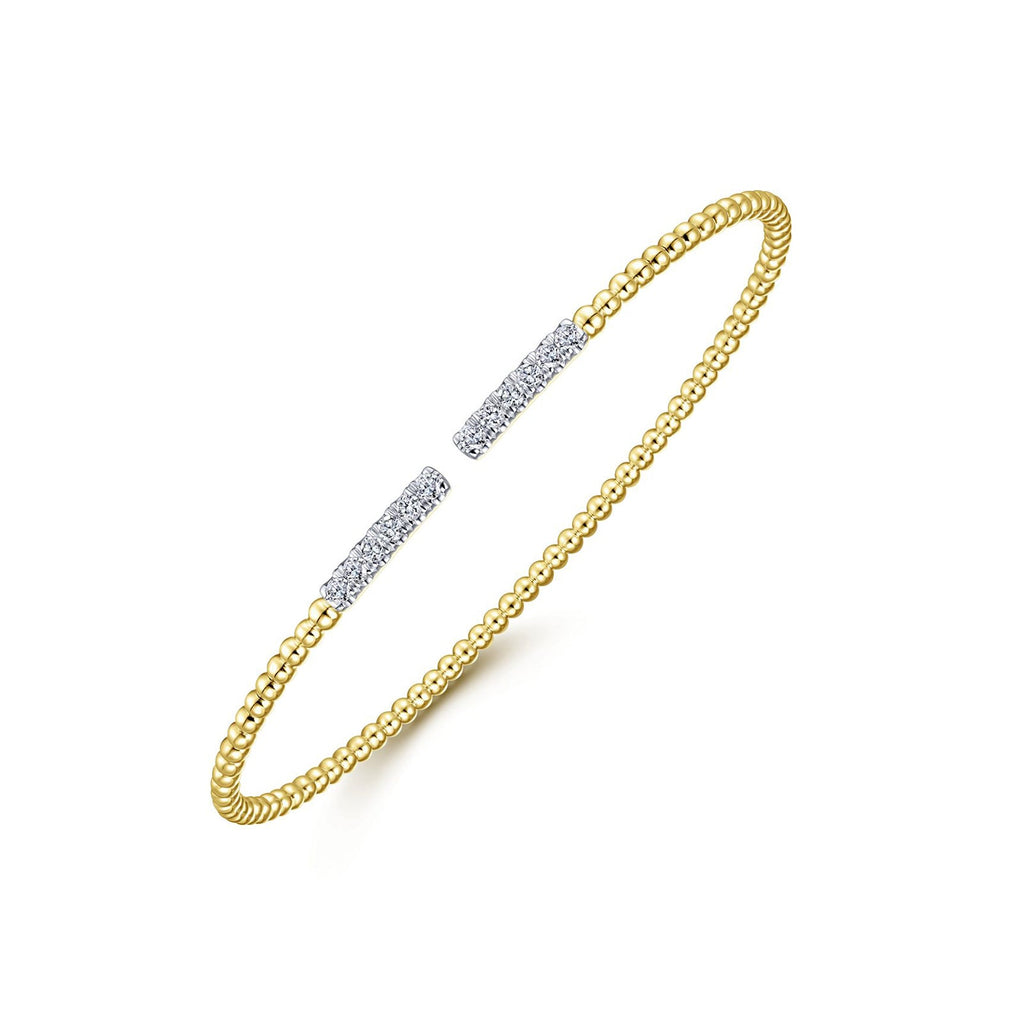 14K Yellow Gold Bujukan Bead Cuff Bracelet with Diamond Pavé Bars