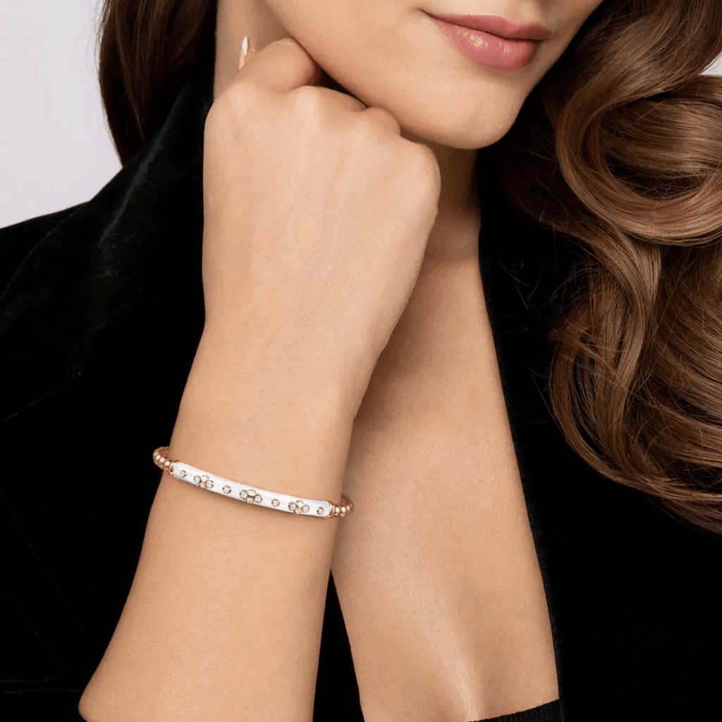 Gabriel & Co. Bujukan Beads and Diamond Split Bangle Bracelet with White Enamel with Lock