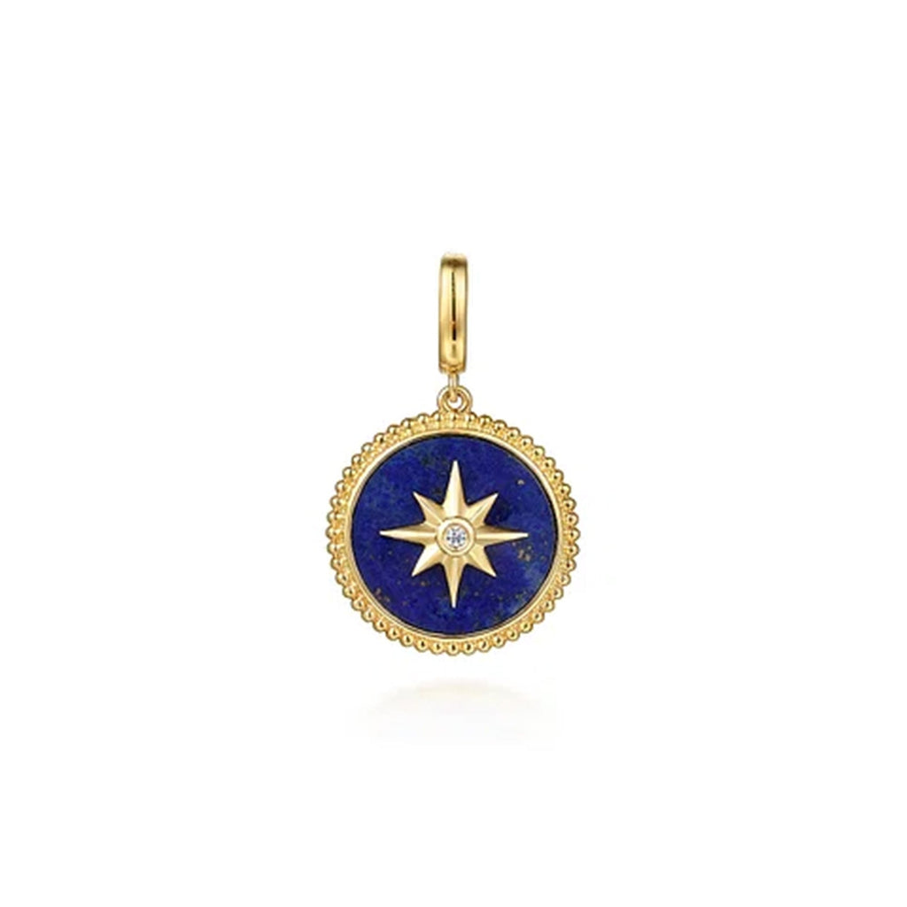 Gabriel & Co. Bujukan Lapis Medallion Pendant in 14 karat yellow gold.