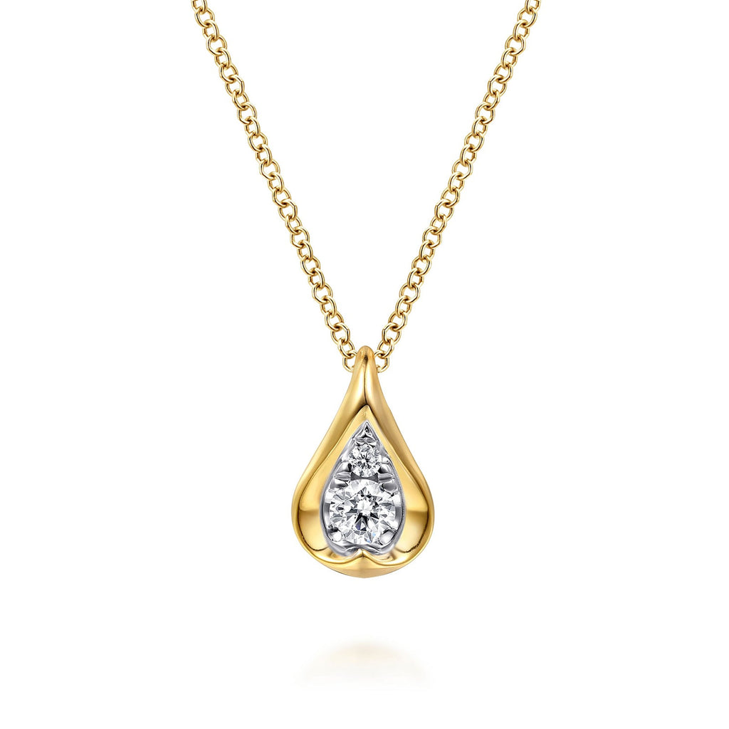Gabriel & Co. Diamond Teardrop Pendant Necklace in 14K white and yellow gold with diamonds totaling 0.18 carats.
