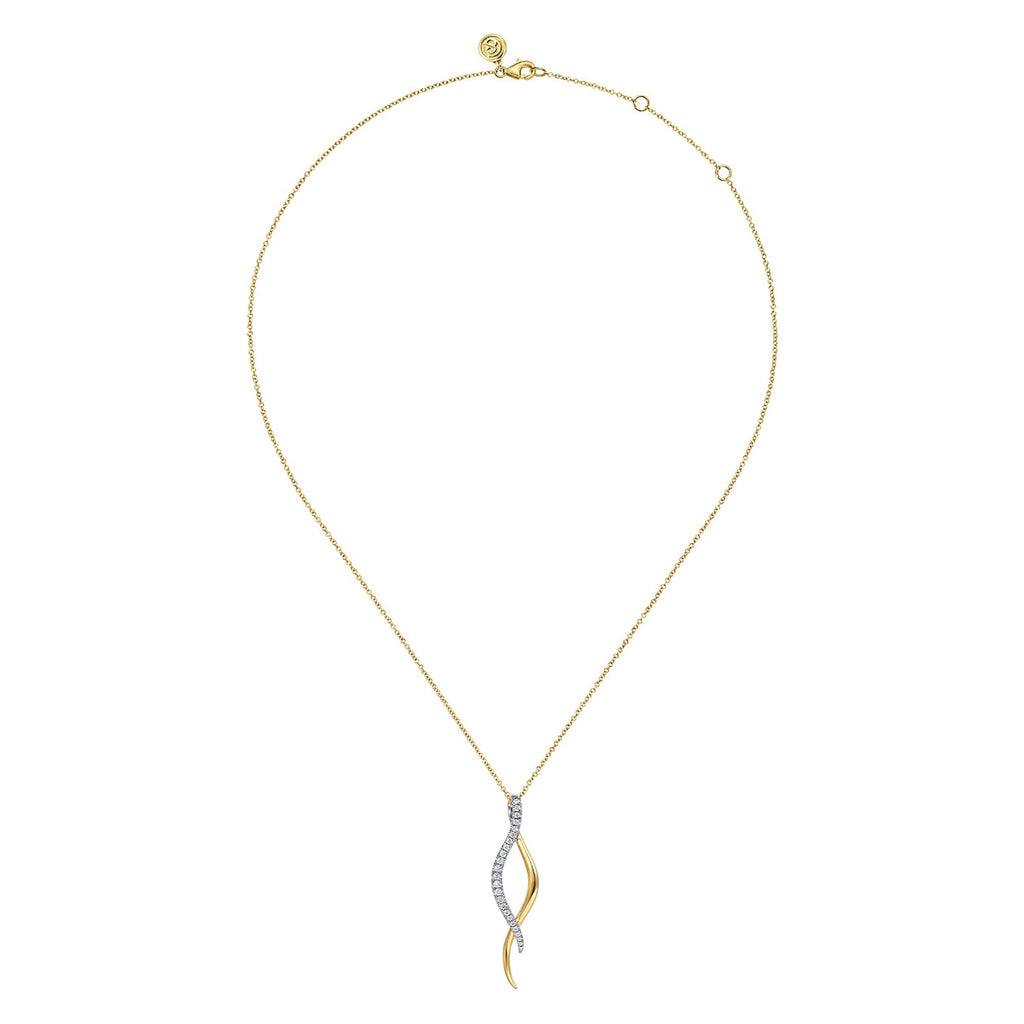 Gabriel & Co. Diamond Swirl Pendant Necklace in 14K yellow gold with diamonds.