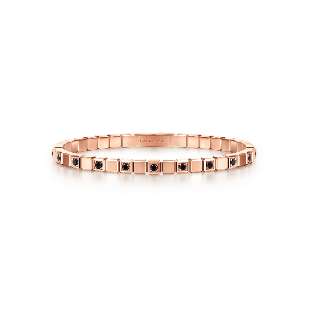 Gabriel & Co. Gold Mens Bangle with Black Diamonds in 14K Rose Gold with Black diamonds totaling 1.14 carats. The bangle measures 7.5 inches.