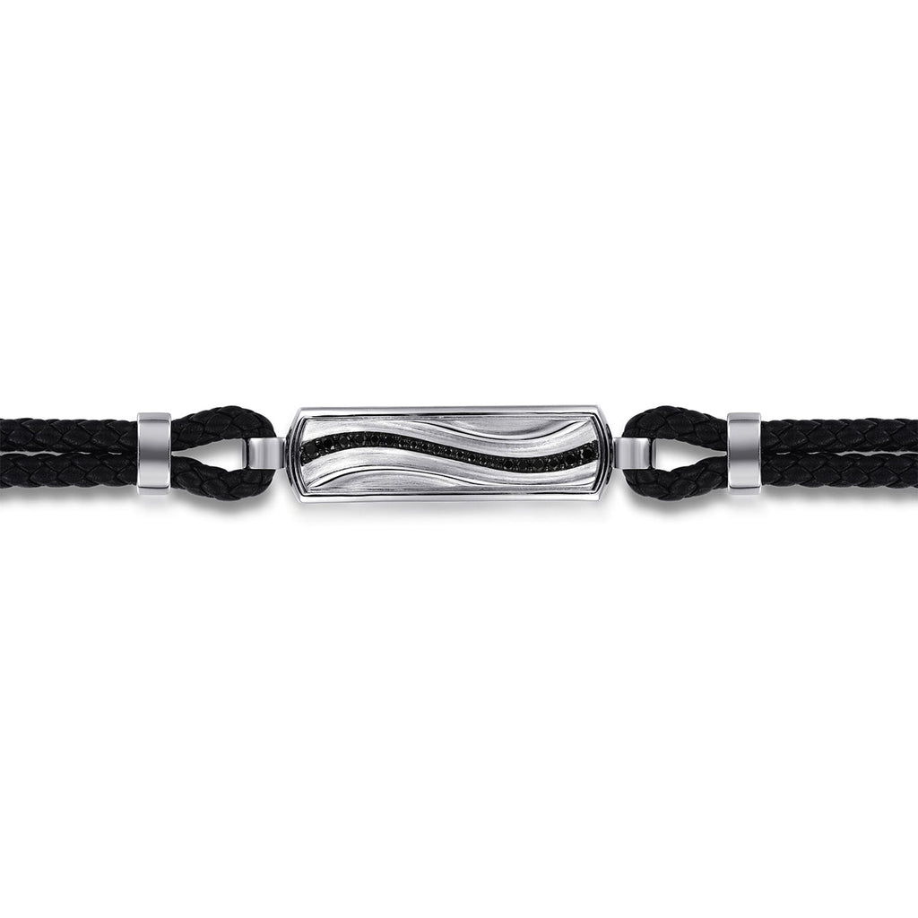 Gabriel & Co. Leather Bangle with Black Spinel Wave ID Bangle in 925 sterling silver.