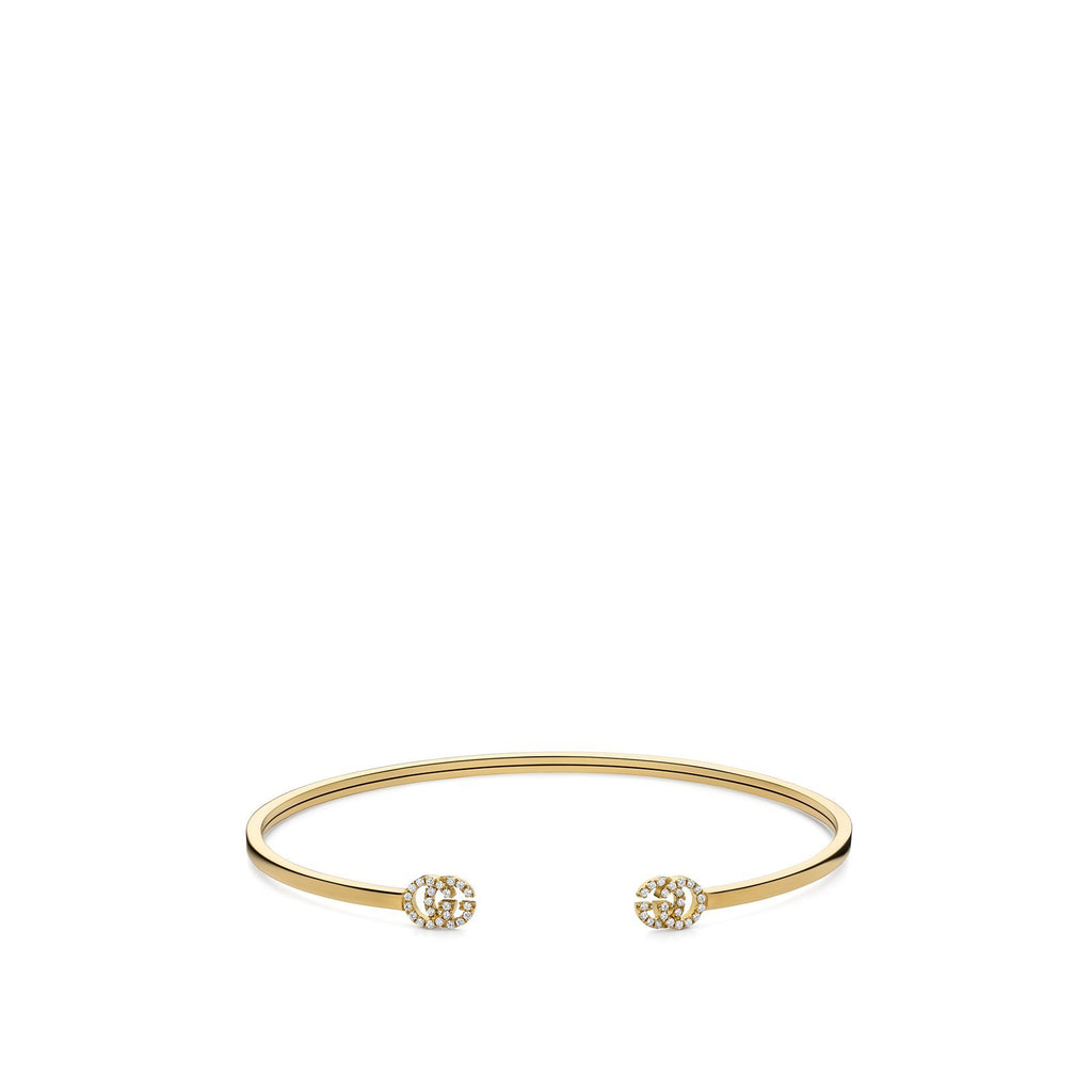 Gucci GG Running Yellow Gold Cuff with Diamonds