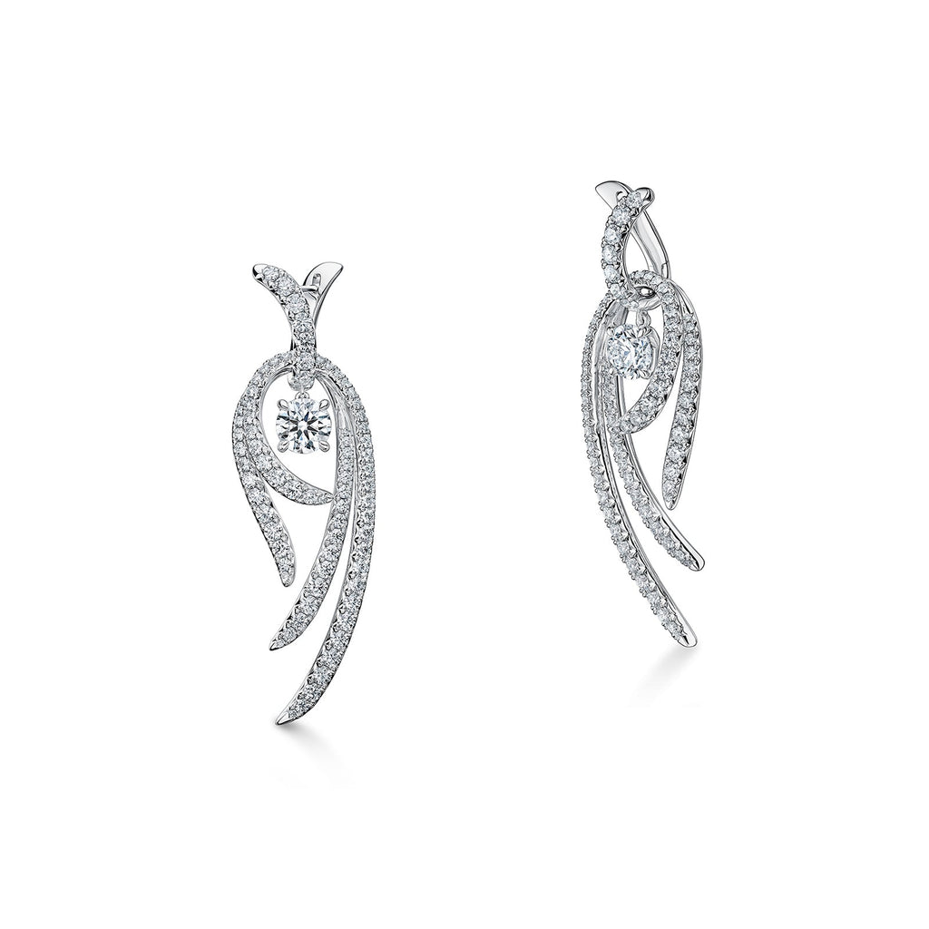 Hearts on Fire Vela Twisted Drop Earrings, Small in 18 karat white gold with diamonds totaling 2.90 carats.