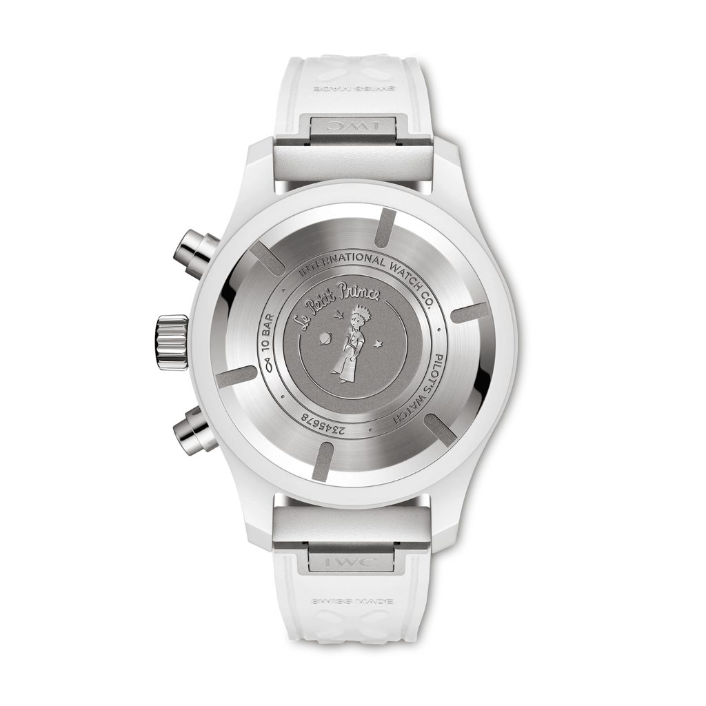 The Pilot’s Watch Chronograph 41 Le Petit Prince unites the timeless fascination of Antoine de Saint-Exupéry’s famous tale with the exceptional material properties and distinctive aesthetic of white ceramic.