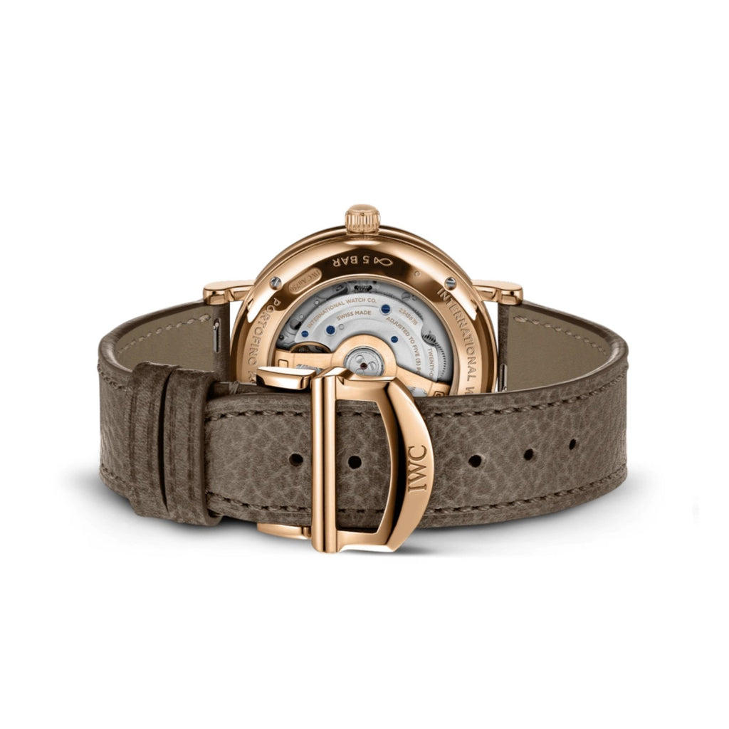 18 ct 5N gold case, Automatic, self-winding, Diameter 37.1 mm, Taupe calfskin strap with quick-change system, Strap width 18.0 mm.