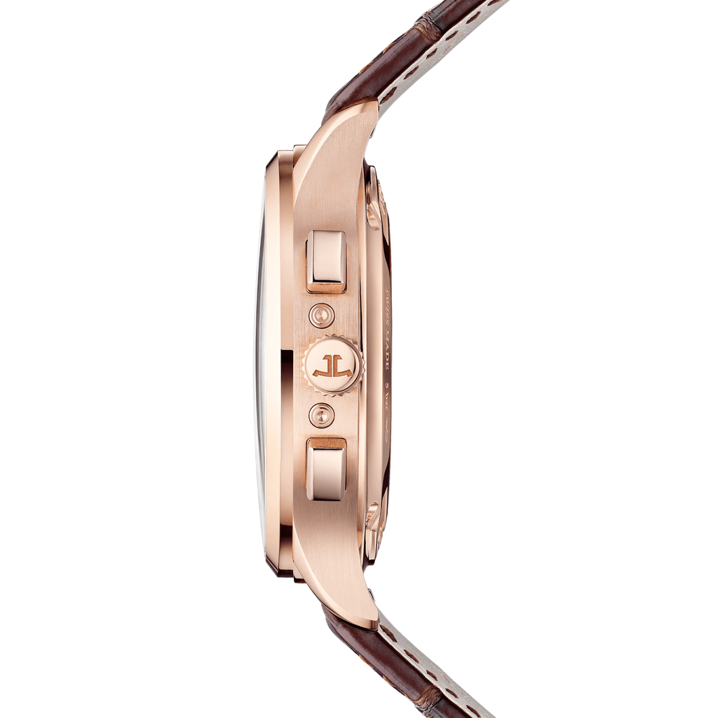 Identifiable at first glance by the bright color of its pink gold case, the Master Control Chronograph Calendar bears a strong personality. The chronograph and calendar, two very useful everyday complications, stand out on its sunrayed silver dial. With the new Jaeger-LeCoultre Caliber 759, this timepiece confirms the Grande Maison's expertise in chronographs and calendars.