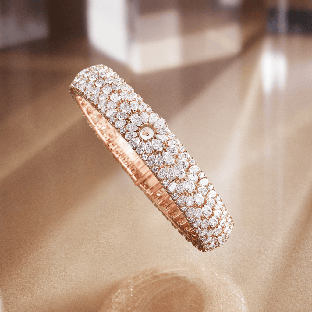 Bracelet: Pink gold set with 904 diamonds, including brilliant-cut and 204 pear-shaped stones for 20.9 carats