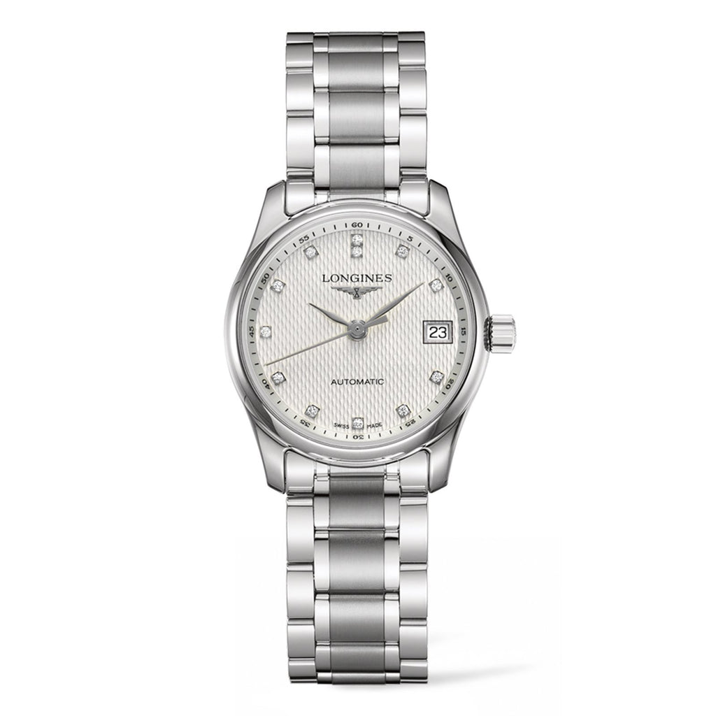 29mm stainless steel case, silver "barleycorn" dial with diamond markers. Date display. Automatic movement, power reserve of 40 hours. Water resistance of 3 bar. Stainless steel bracelet.