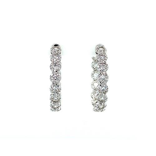 18K White Gold Diamond Hoop Earrings. Diamonds approximately 2.66 total carat weight