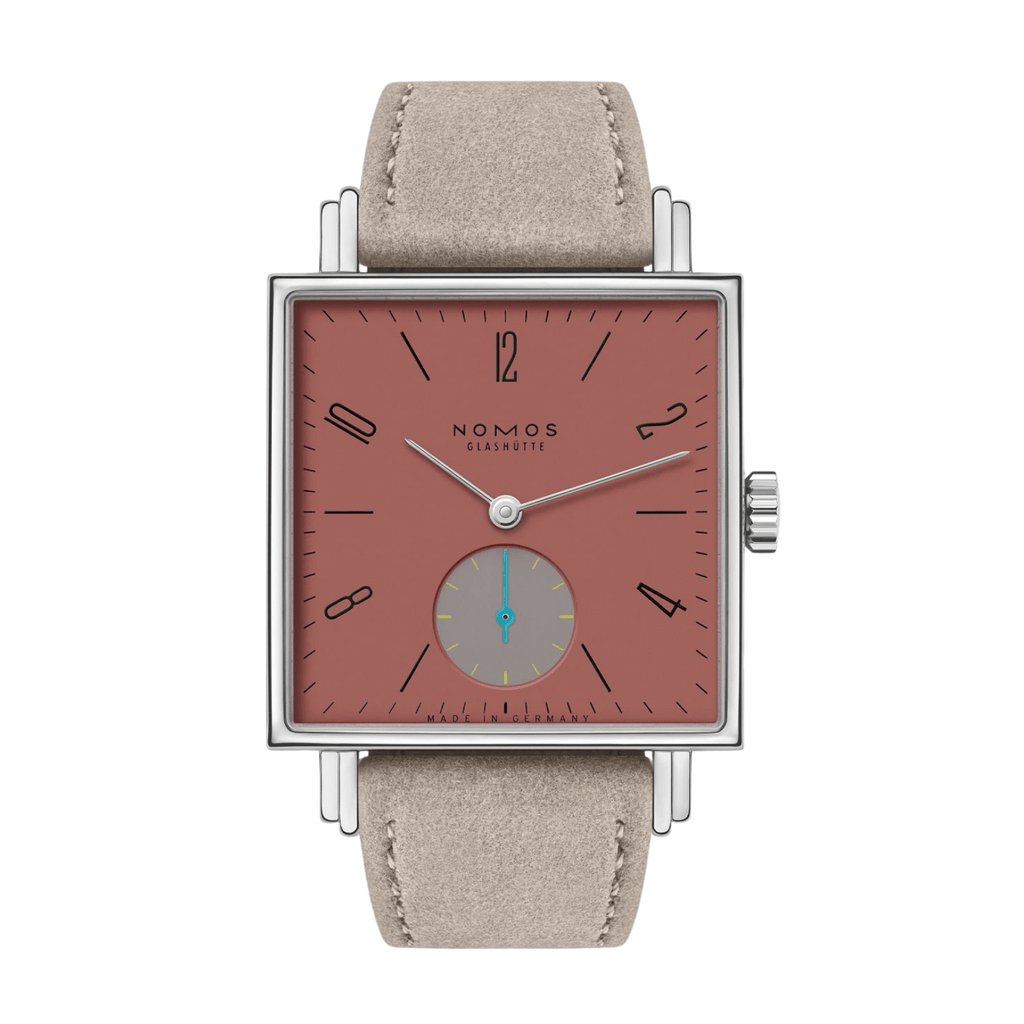 The earthy red hue of this dial evokes a sense of grounded strength, while its square case provides a modern frame. Contrasting color accents in the sub-seconds dial create an appealingly complex palette. Powered by German mechanics, namely the hand-wound DUW 4001 caliber, this watch is both a statement and a reliable companion on the wrist.