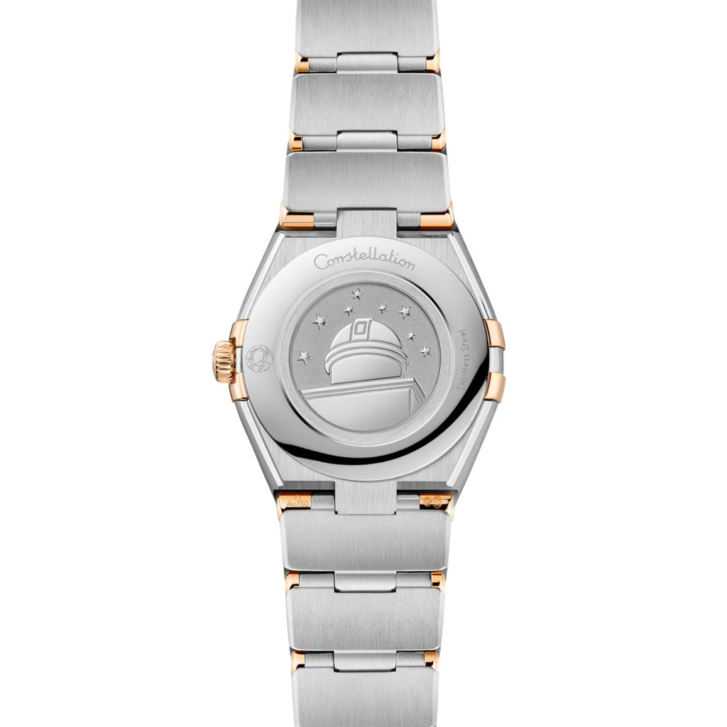 The 25 mm watch is presented with a case and mono-rang bracelet created from stainless steel and 18K yellow gold, with signature Constellation features including the polished claws, half-moon facets, and a diamond-paved bezel.