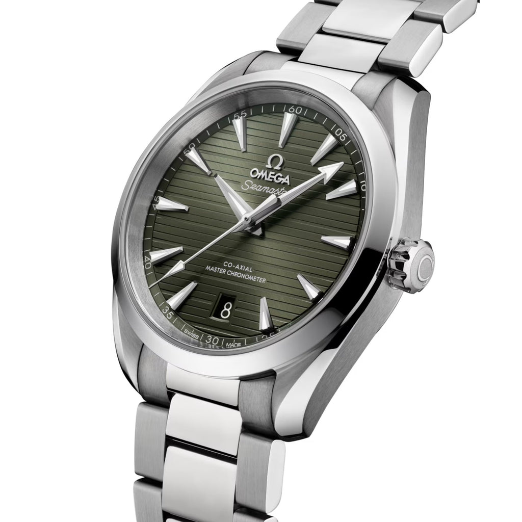 The watch is presented on a polished and brushed bracelet with OMEGA’s patented screw and pin system, and powered by the OMEGA Master Chronometer calibre 8800, certified at the industry’s highest standard by the Swiss Federal Institute of Metrology (METAS).