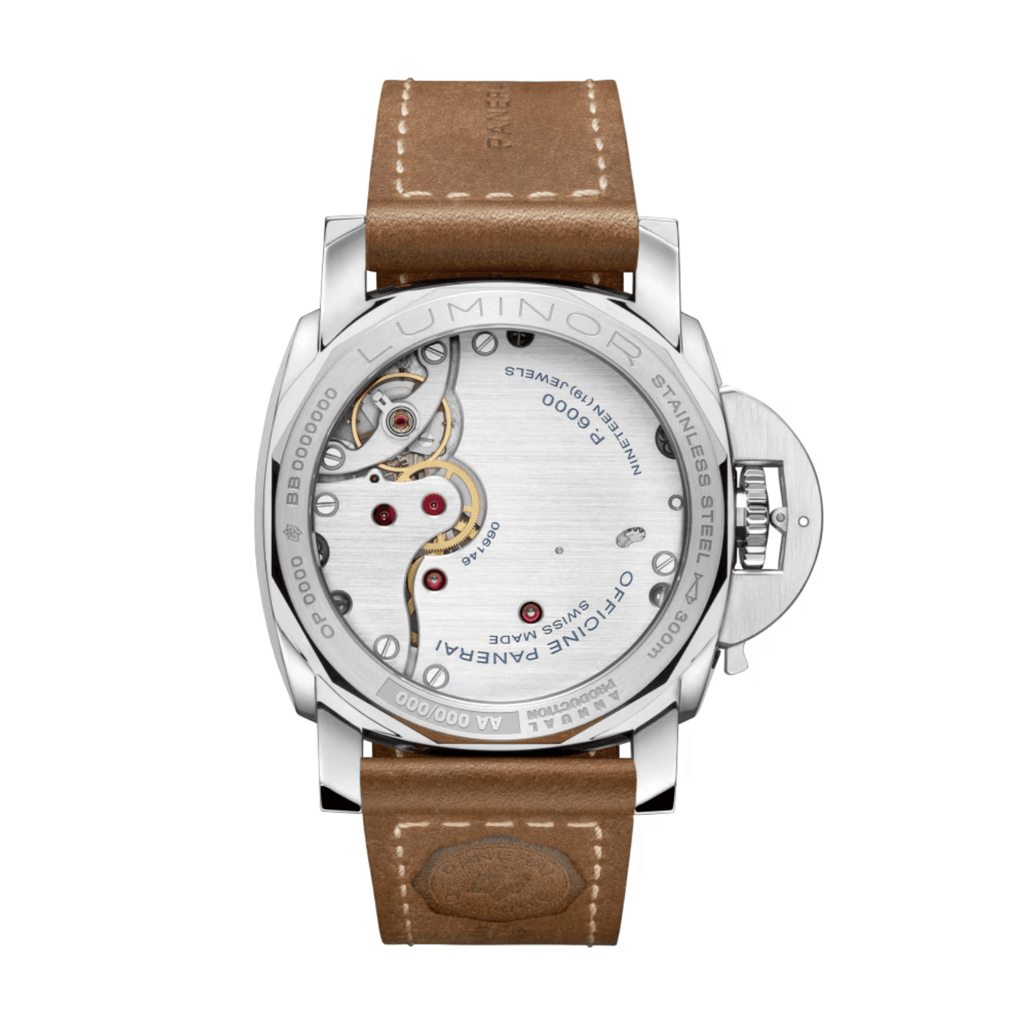 Luminor PAM01732 revisits Panerai’s historic Destro configuration, developed to support the operational needs of military divers. By positioning the crown protective bridge on the left side of the case, the watch could be worn on the right wrist, leaving the diver’s dominant hand free to operate essential instruments such as a compass or depth gauge. This purposeful design reflects Panerai’s longstanding approach to watchmaking, where functionality shaped every element. Reinterpreting this archival configuration in a contemporary 44 mm format, PAM01732 preserves the spirit of those professional instruments while adapting their distinctive character for modern wear.