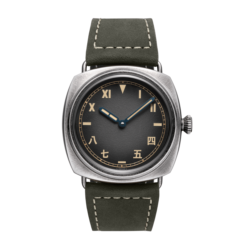A refined timepiece featuring a commanding 45mm stainless steel case paired with a sophisticated grey dial. Built for durability with 100m water resistance, it rests on a supple calfskin strap. The hand-wound movement delivers an impressive 8-day power reserve, embodying classic watchmaking craftsmanship.