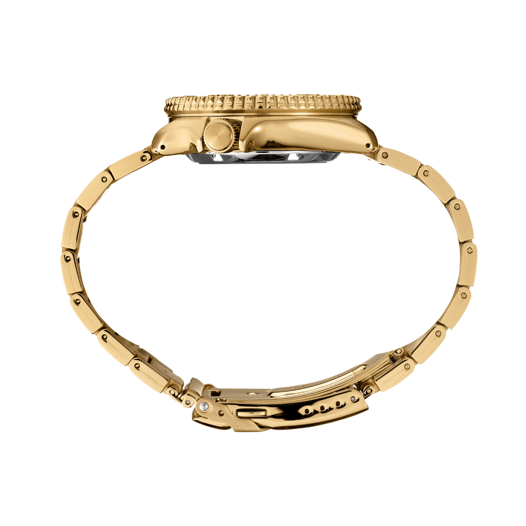 42.5mm rose gold PVD stainless steel case, rose gold dial. Date and day display. Automatic movement, power reserve approximately 41 hours. Water resistance of 10 bar.