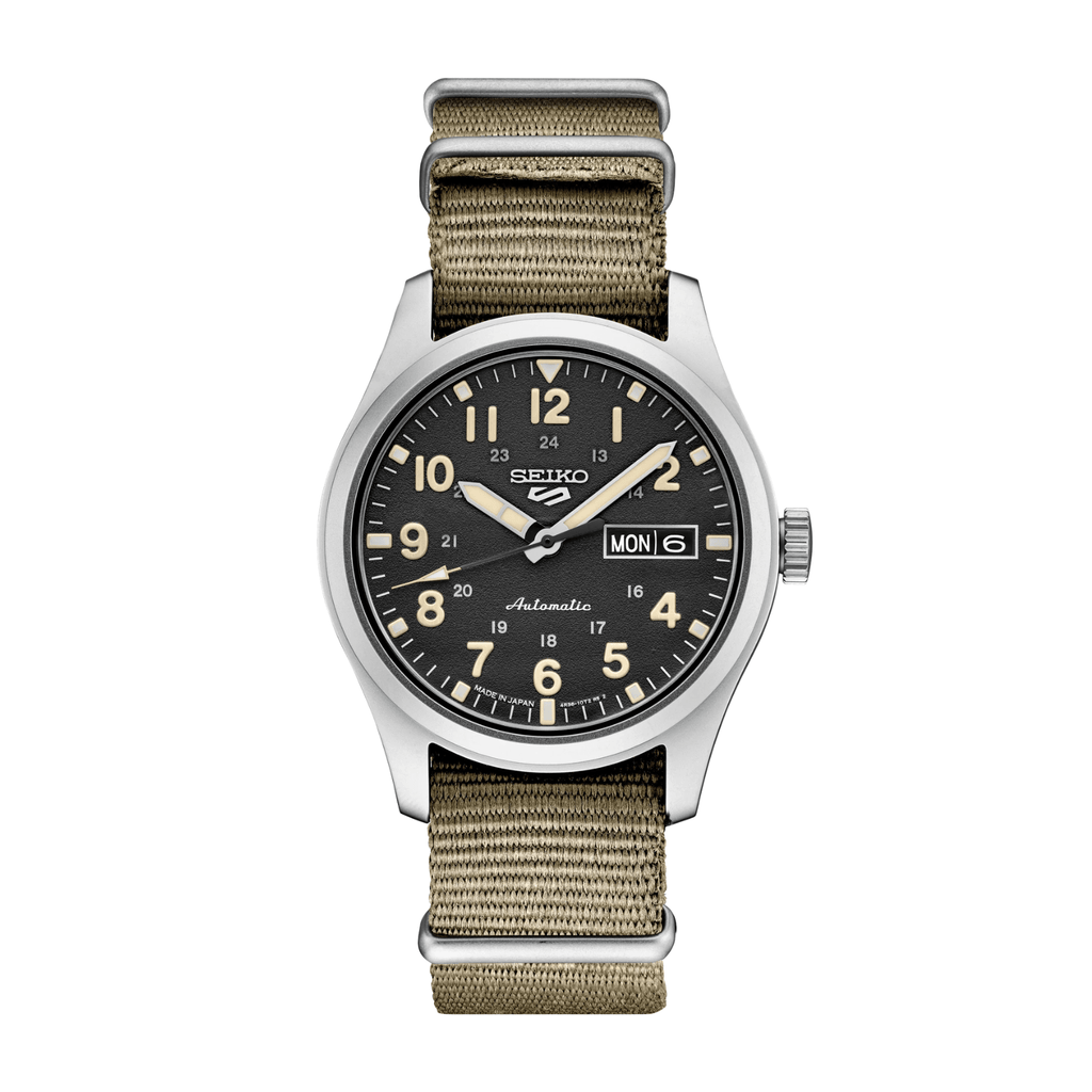 Seiko 5 Sports. Inspired by classic field/military design, this stylishly retro watch offers authentic lines with both durability and all-day excellence. Providing automatic technology that you control with every movement, this versatile watch is powered by a 24-jewel movement that...