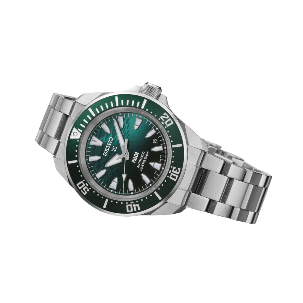 A special edition symbolizes the partnership between Prospex and PADI. Infused with a love for the beautiful ocean, it features an emerald-green gradient dial inspired by shimmering light and the rippling surface as seen from underwater. It comes in a...